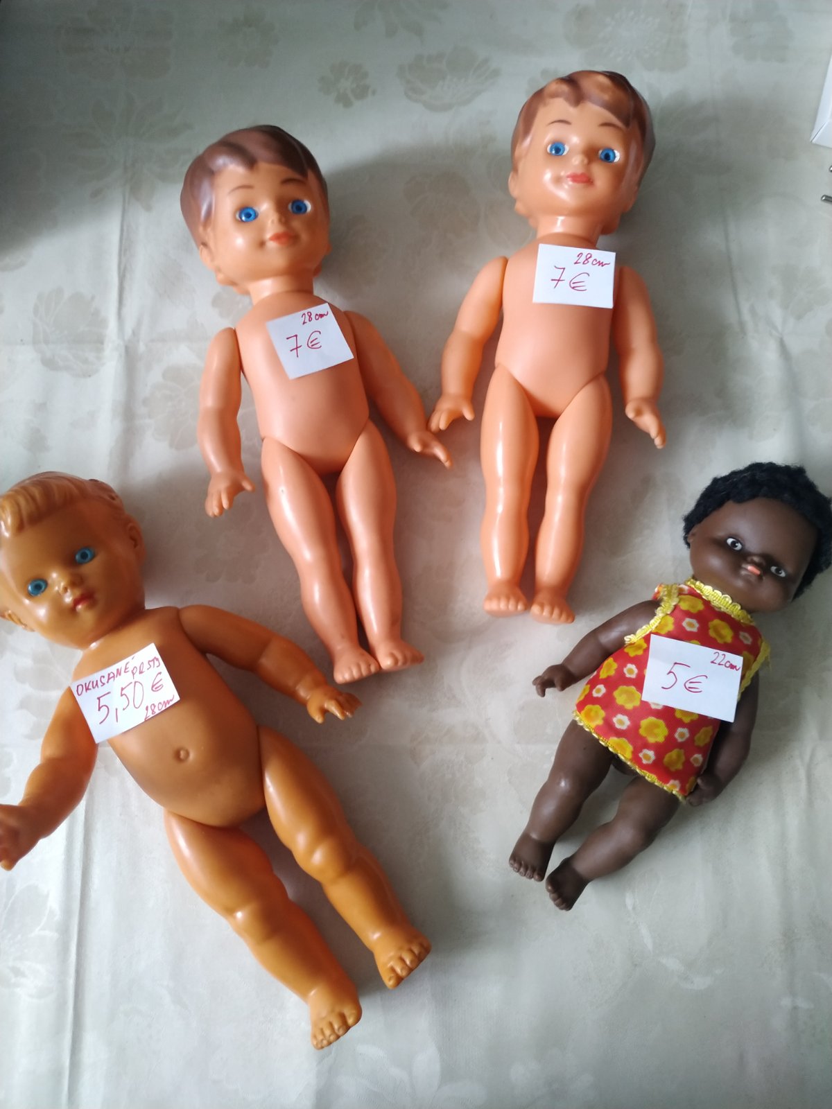 Bábiky retro. Černoška predaná. Jedna bábika okusané prsty- cena 5,50€