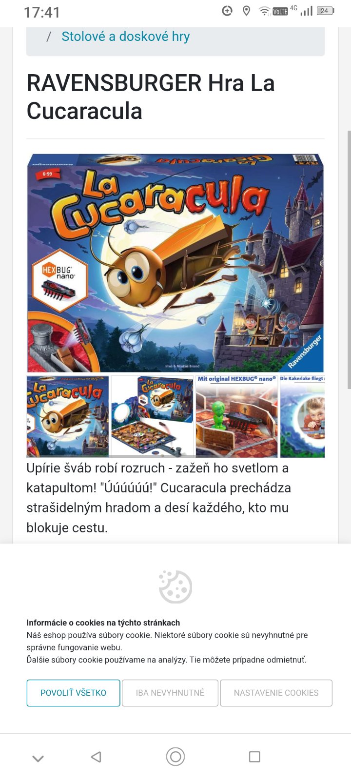 Spoločenská hra Cucaracula Ravensburger, výborný stav.