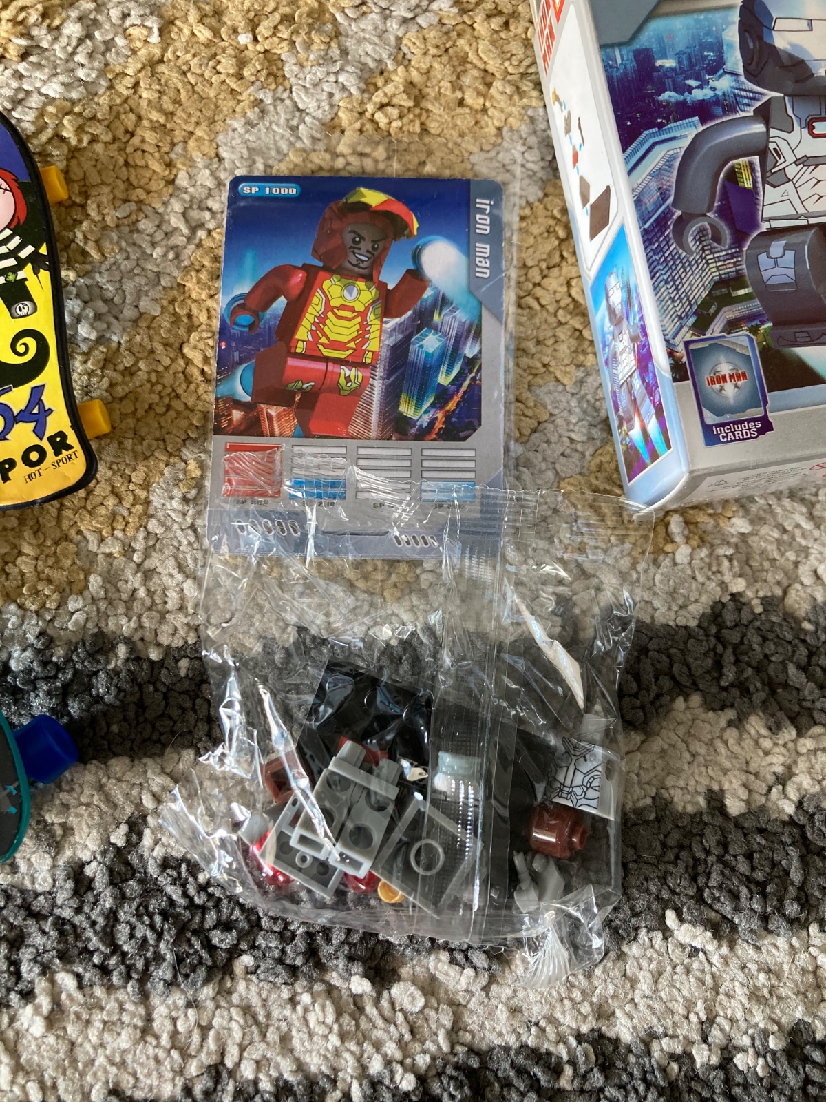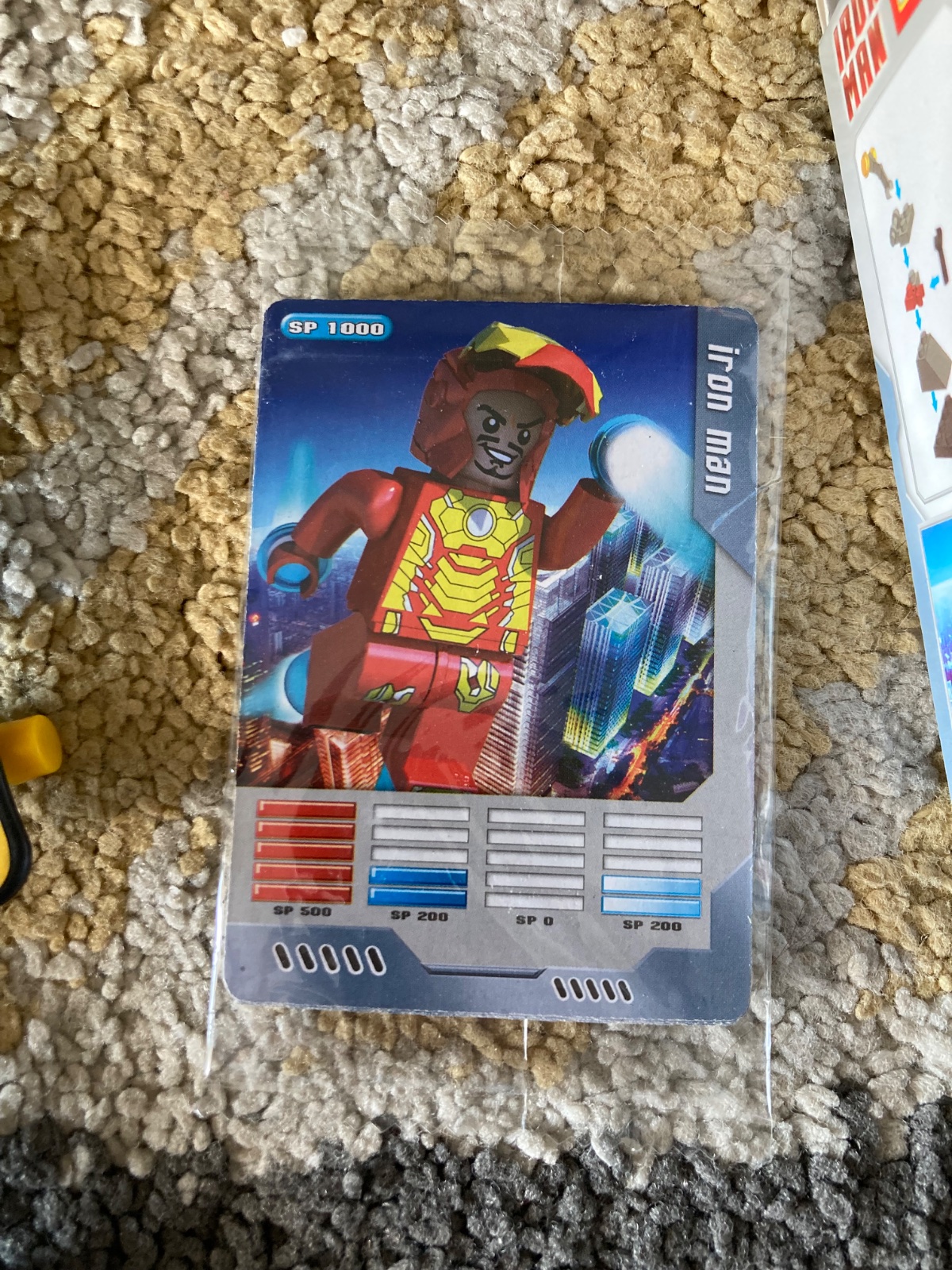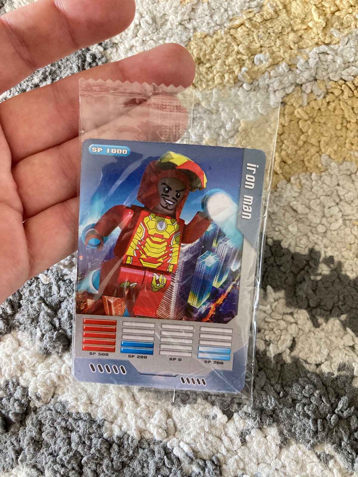 iron man (nie je Lego) je ešte originál zabalený plus sú k nemu tri zabalené karty.
