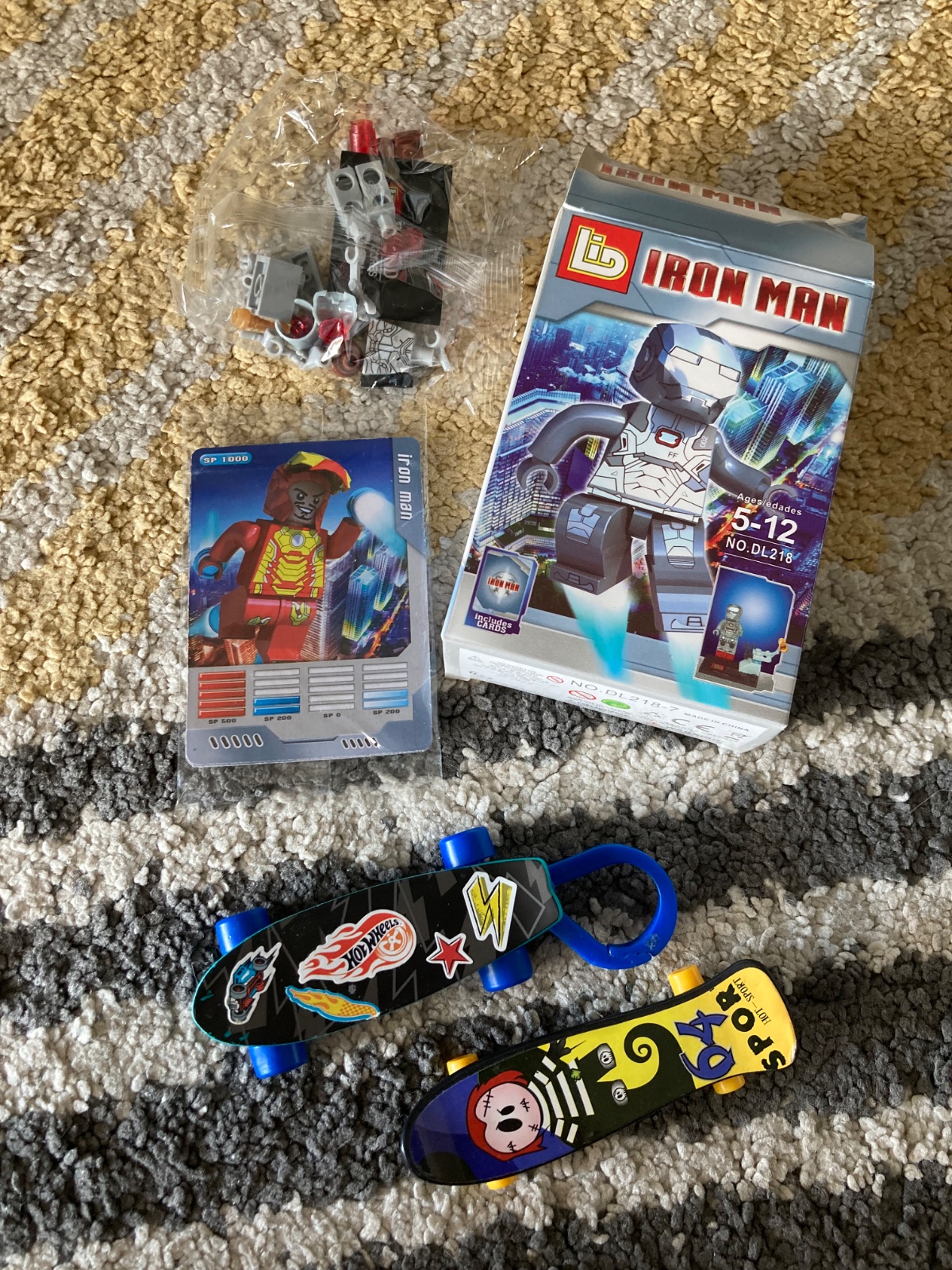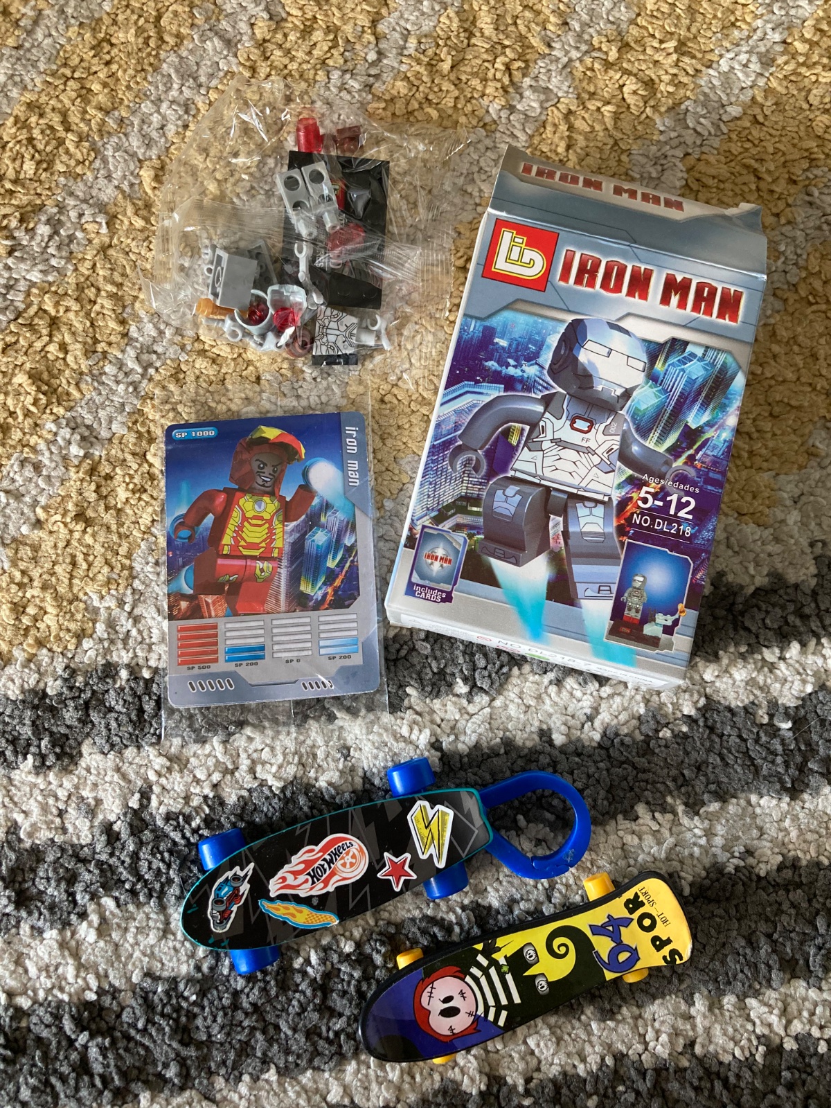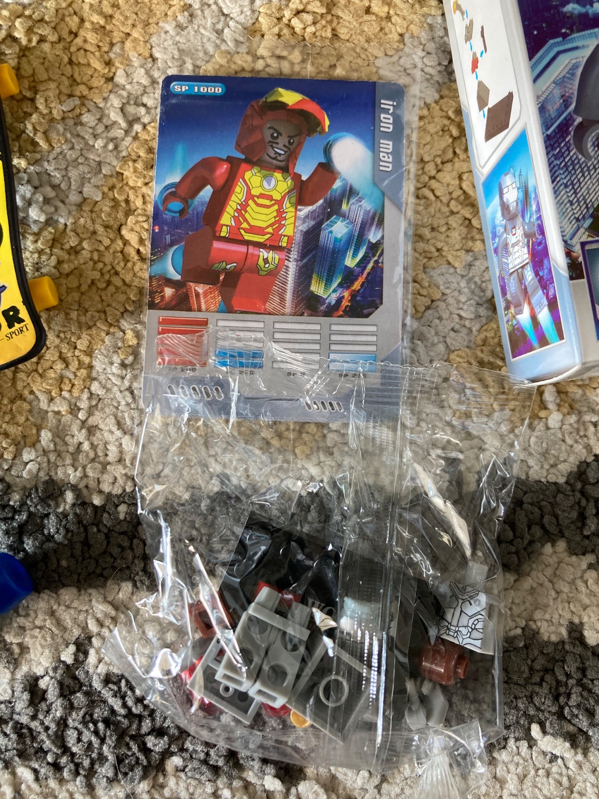 iron man (nie je Lego) je ešte originál zabalený plus sú k nemu tri zabalené karty.