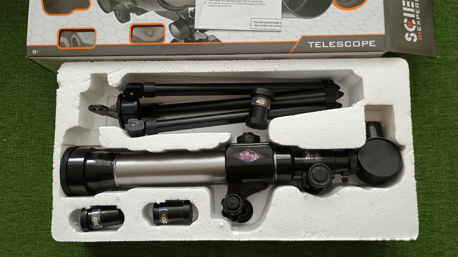 top stav, necely rok to mame, minuly rok skoro nepouzity, ale ako sme teraz chceli kukat mesiac, nejaky bol otoceny, a nasledne cez den na pozemske objetky to je vertikalne zkradlene, co by nemalo byt... ako povedal google, jav otocenia (hore nohami) by mal byt OK, ale taka kompenzujuca sucast (diag zrkadlo, ak to vobec ma, co sa javi ze ma), by to "pre pozemske predmety" mala korigovat a ukazat normalne, ale stale to je horiz zrkadlene. Takze kvalita odpoveda plastovej hracke :-)) kazdopadne kukat na mesiac a vobec malym detom nieco priblizit je na nezaplatenie :-D paci sa, posuvam dalej...