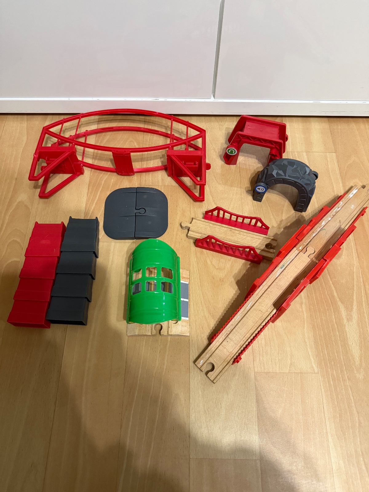 Drevené koľajnice s príslušenstvom.