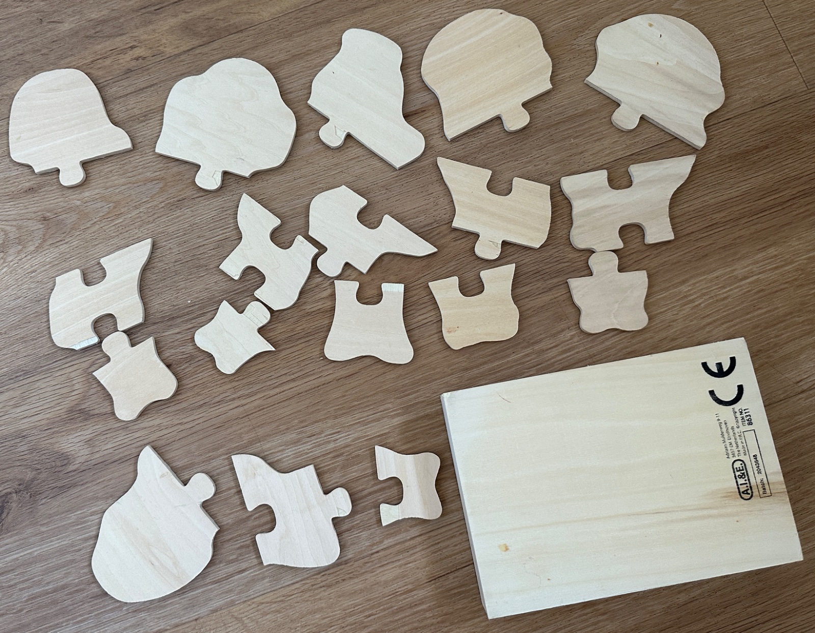 ☘️❤️VYSOKÁ KVALITA A BEZPEČNOSŤ - Tieto puzzle sú vyrobené z hrubej, odolnej drevenej dosky so zaoblenými rohmi. Potlačené netoxickým vysoko lesklým atramentom, bezpečné pre deti. Obojstranne potiahnuté vysoko kvalitnou fóliou pre väčšiu odolnosť, možno ich utrieť vlhkou handričkou. 18 ks drevených puzzlí pre batoľatá 1-3 roky.Drevené puzzle predstavujúce rôzne povolania! Každý dielik predstavuje iné povolanie, napríklad hasiča, policajta alebo astronauta. Každá postavička má 3 dieliky na zostavenie☘️❤️