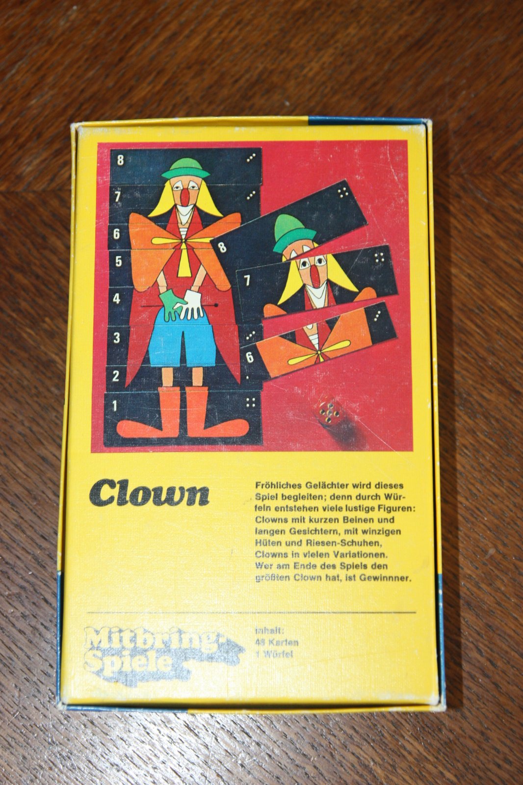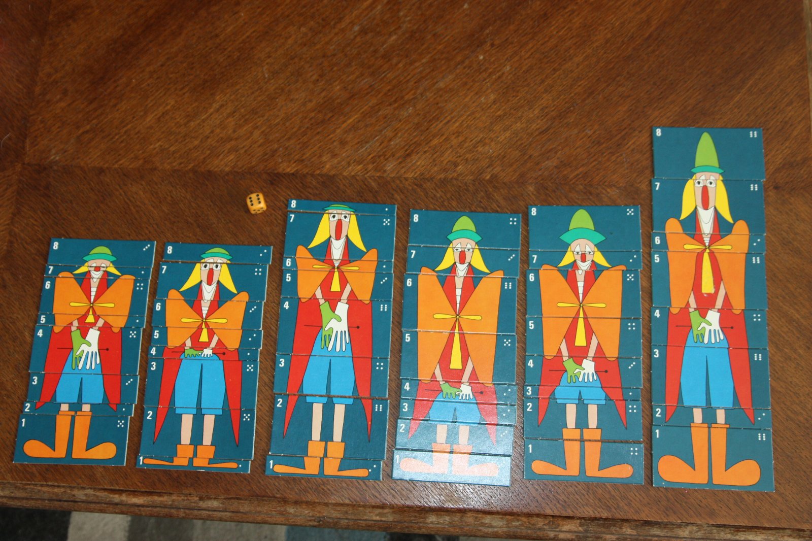 Hráči hádžu kockou, podľa čísel, aké im padnú, dostávajú dieliky rôznych veľkostí. Vyhráva hráč, ktorý postaví najväčšieho klauna. Pravidlá v nemčine + v slovenčine (môj preklad) .