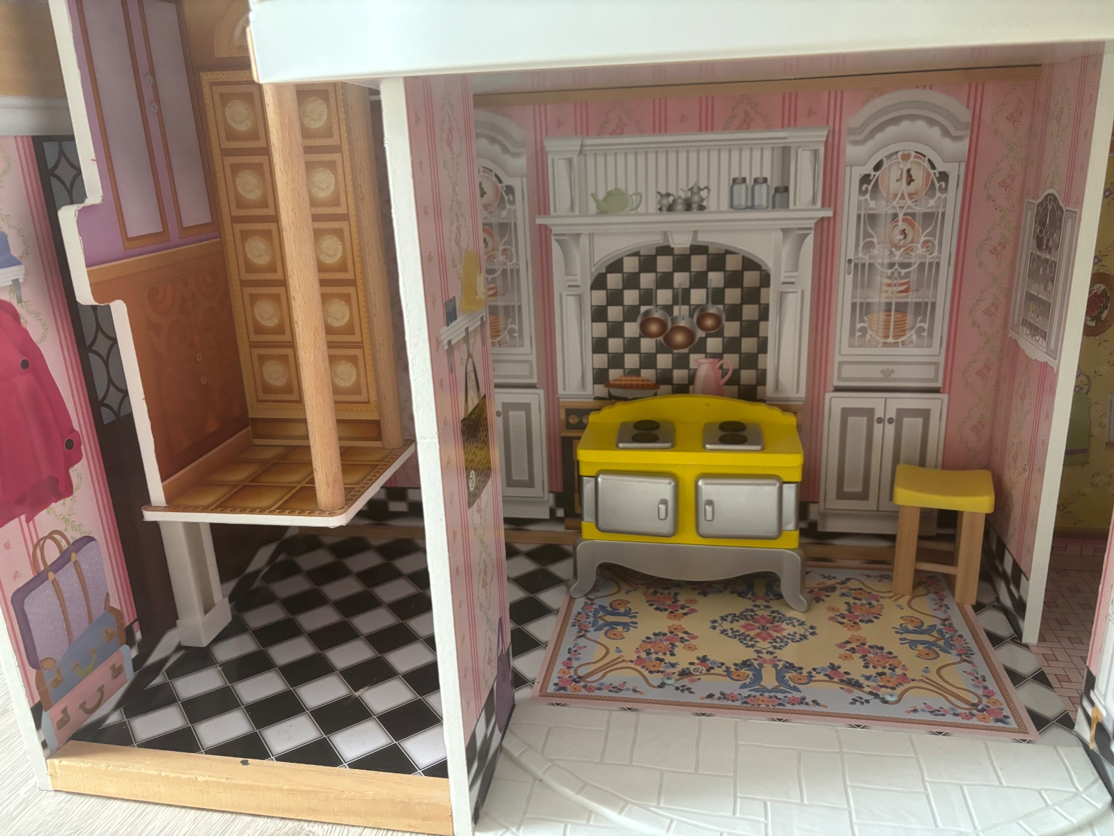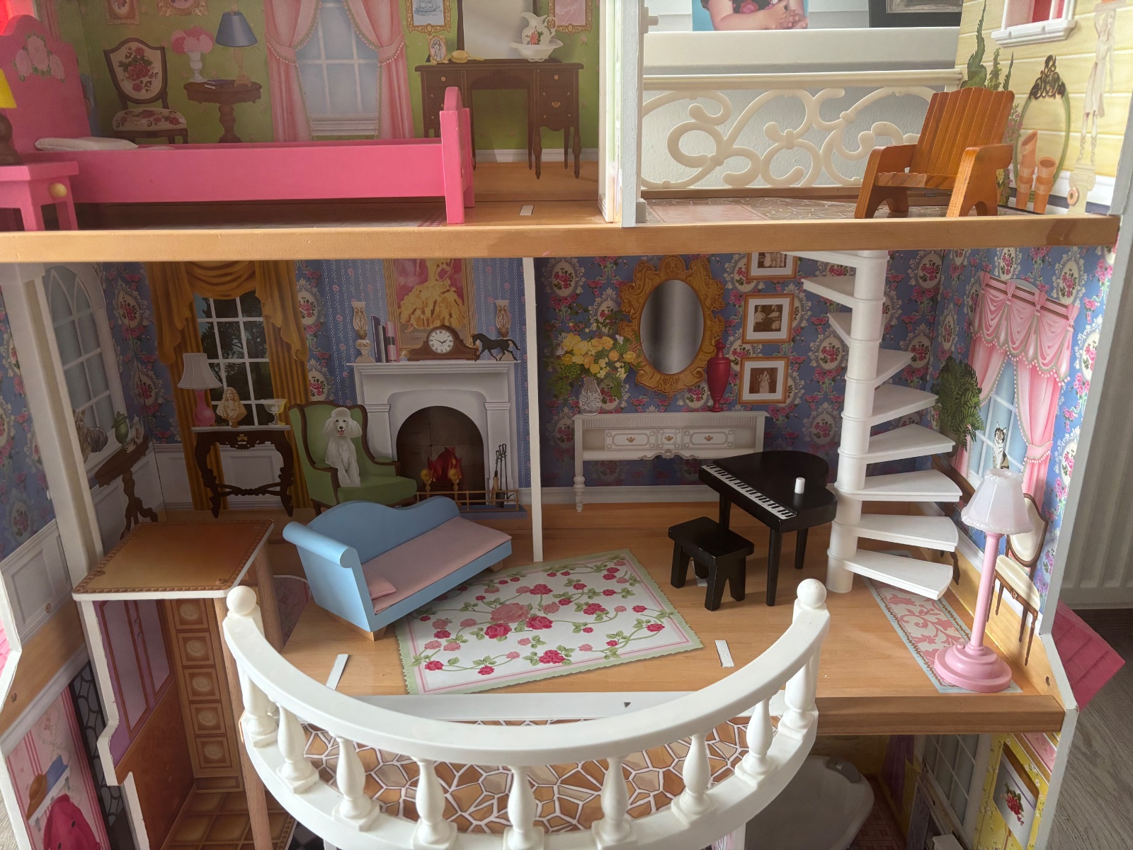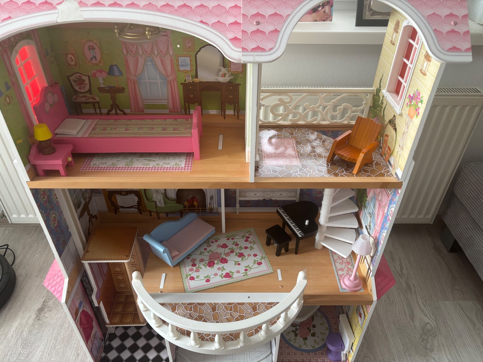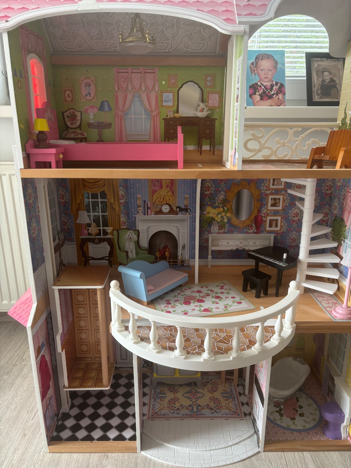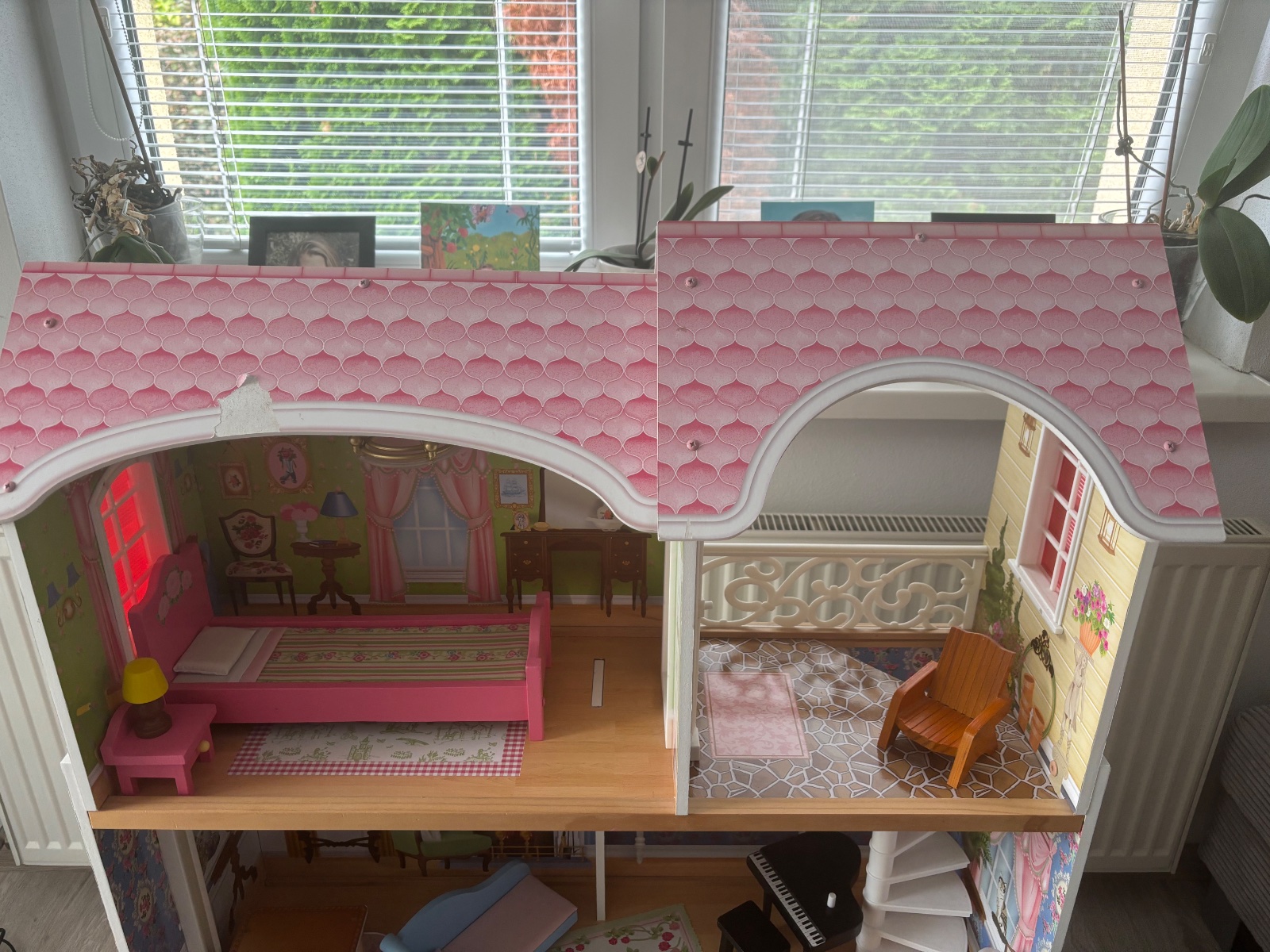 Uzasny BARBIE domcek, velky 3-poschodovy, dcera ma 13,5 roka a tazko sa vzdava, kopec krasnych detailov, stav ako na fotkach, hrany iba mojou dcerou, vsetko funguje, klavir hra, lampa svieti, vytah ide tazsie od zaciatku, jedina vada, pri utierani prachu sa odtrhol kusok papiera na streche, nic vazne, ale radsej upozornim.