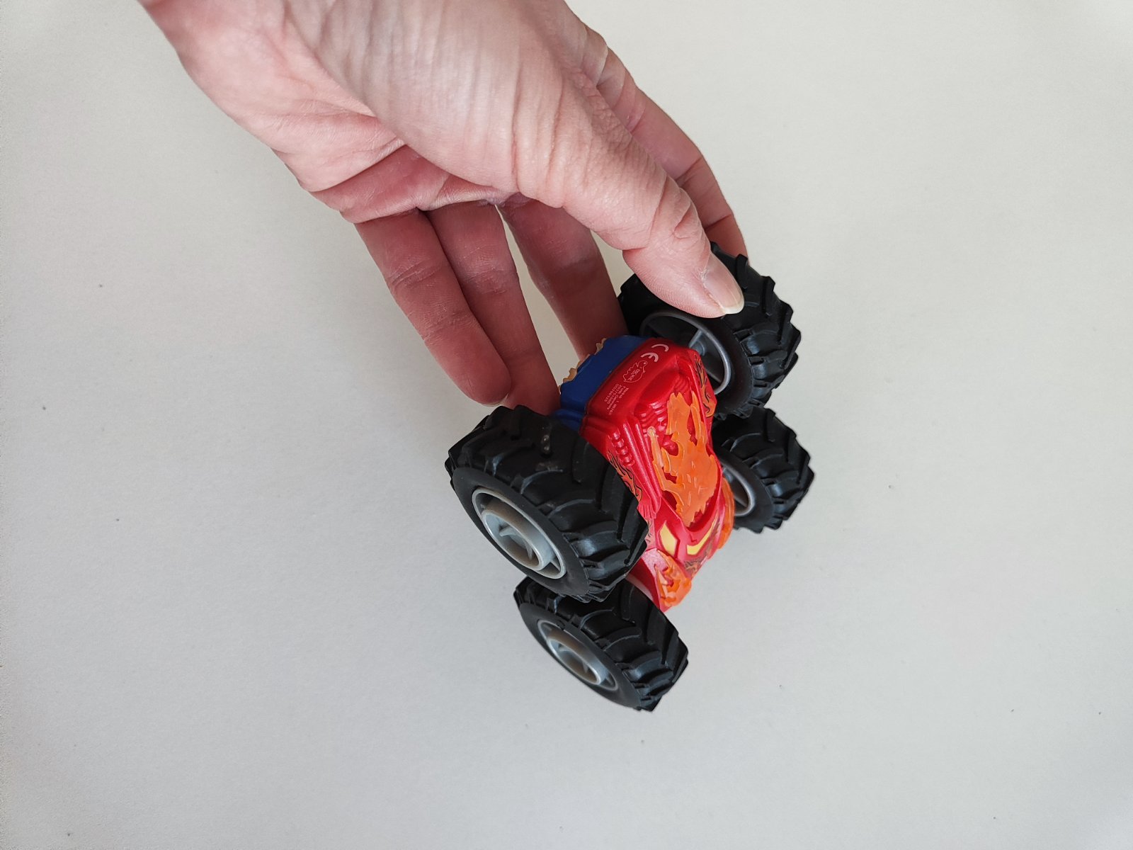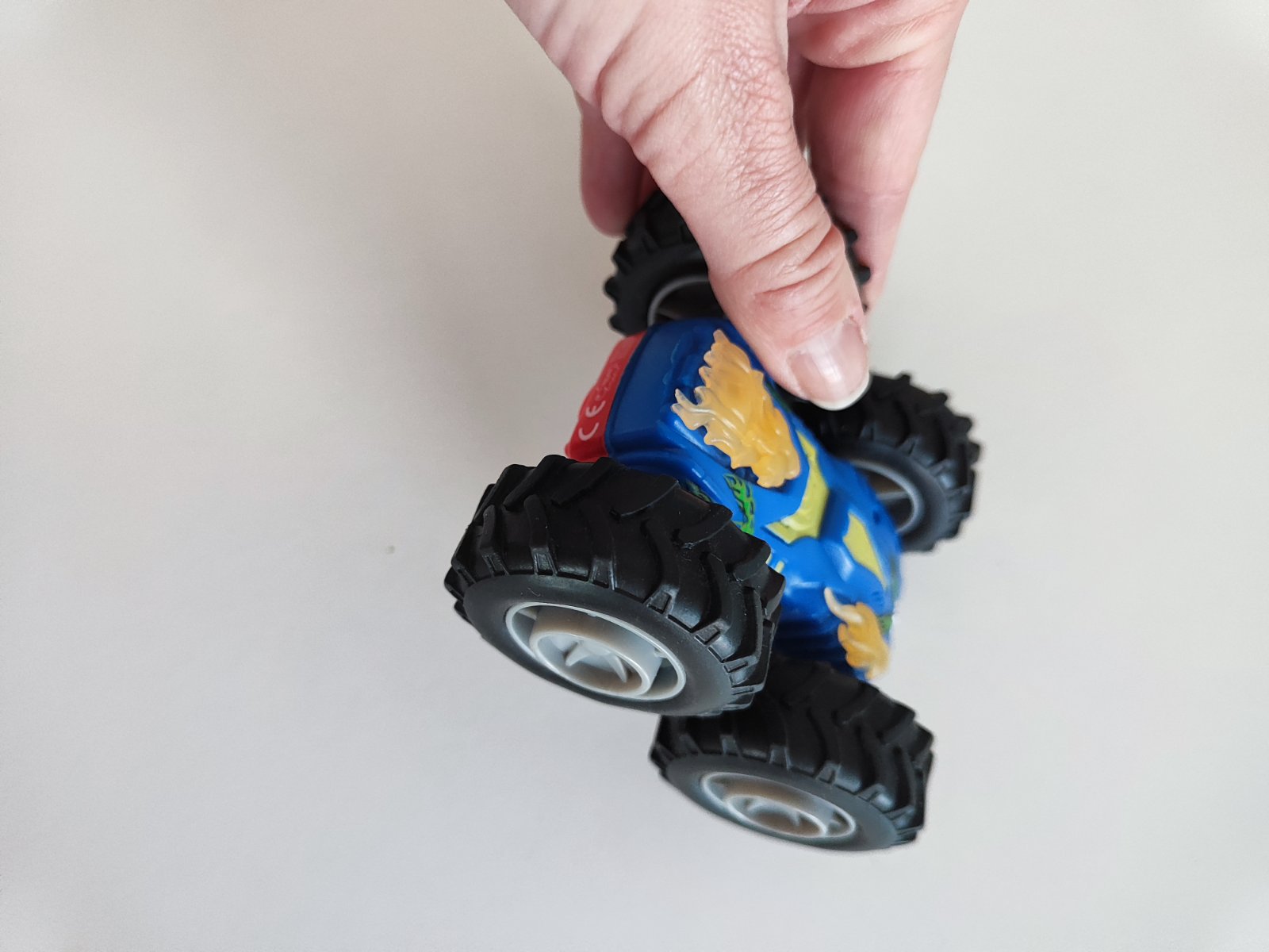 Dĺžka auta 25 cm. Auto ma škrabance. Inak bez poškodenia.Auto je určené pre deti od 12 mesiacov.
