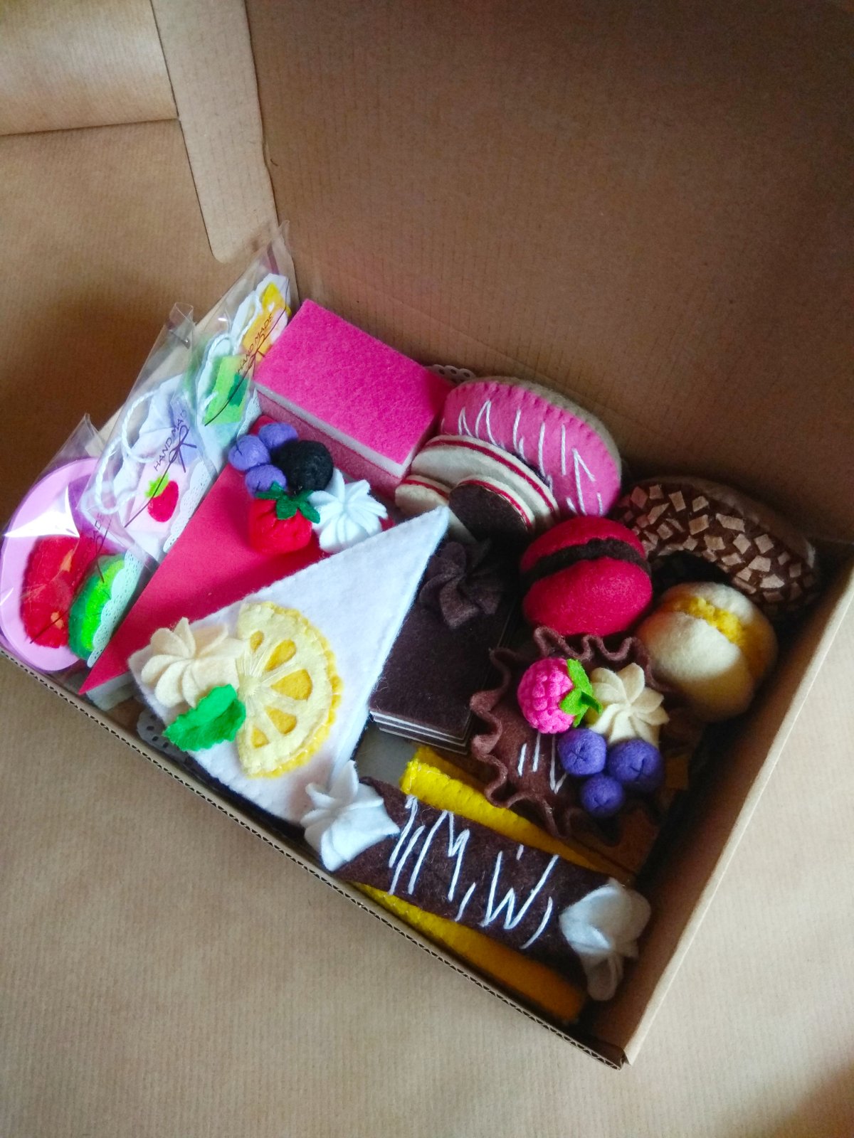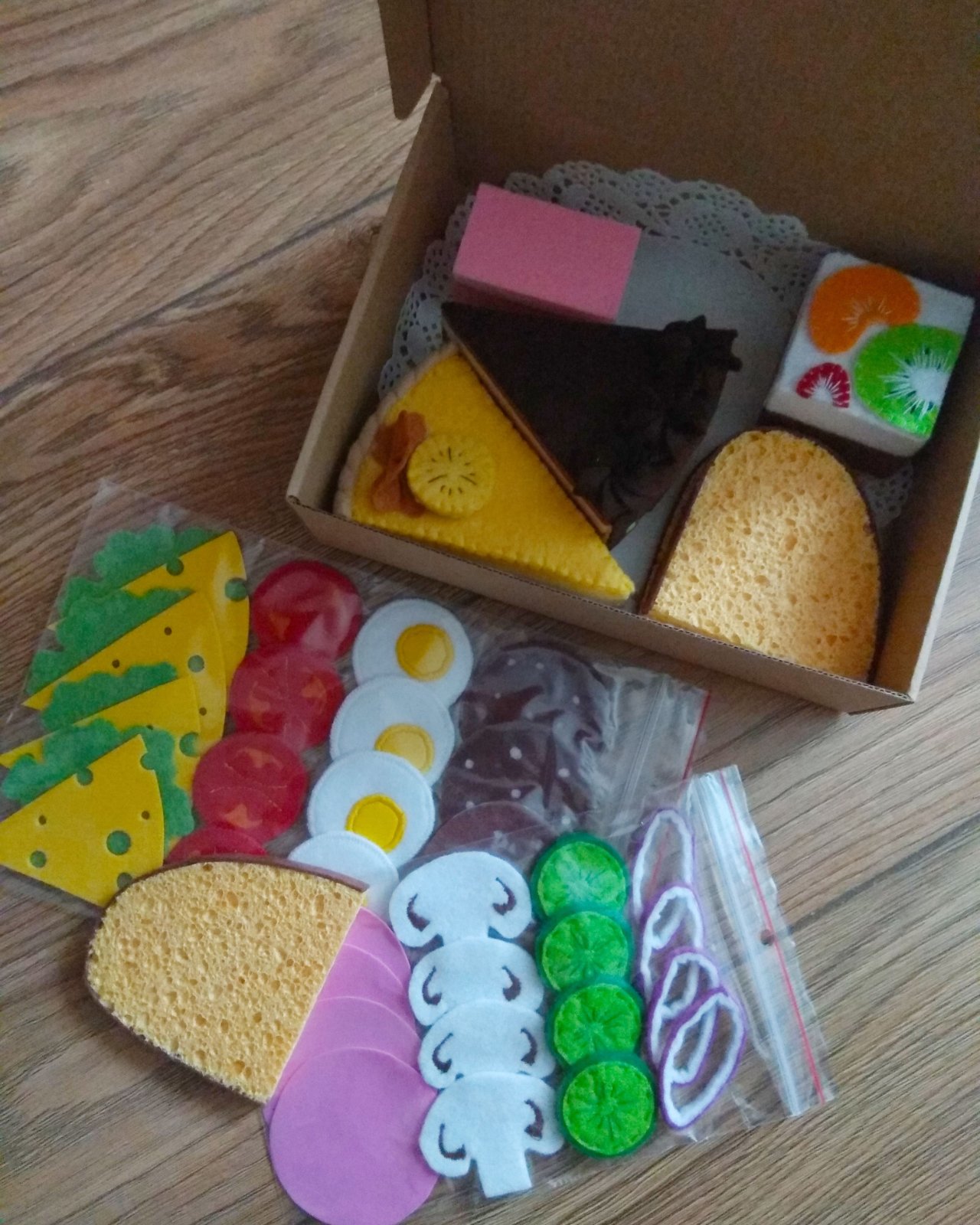 Jedla a kolaciky ako skutocne. Uzasna hracka do kazdej detskej kuchynky. V ponuke mam aj originalne zasterky pre dievcatka aj chlapcov. Cenu viem upravit podla objednaneho poctu kolacikov ci jedal.