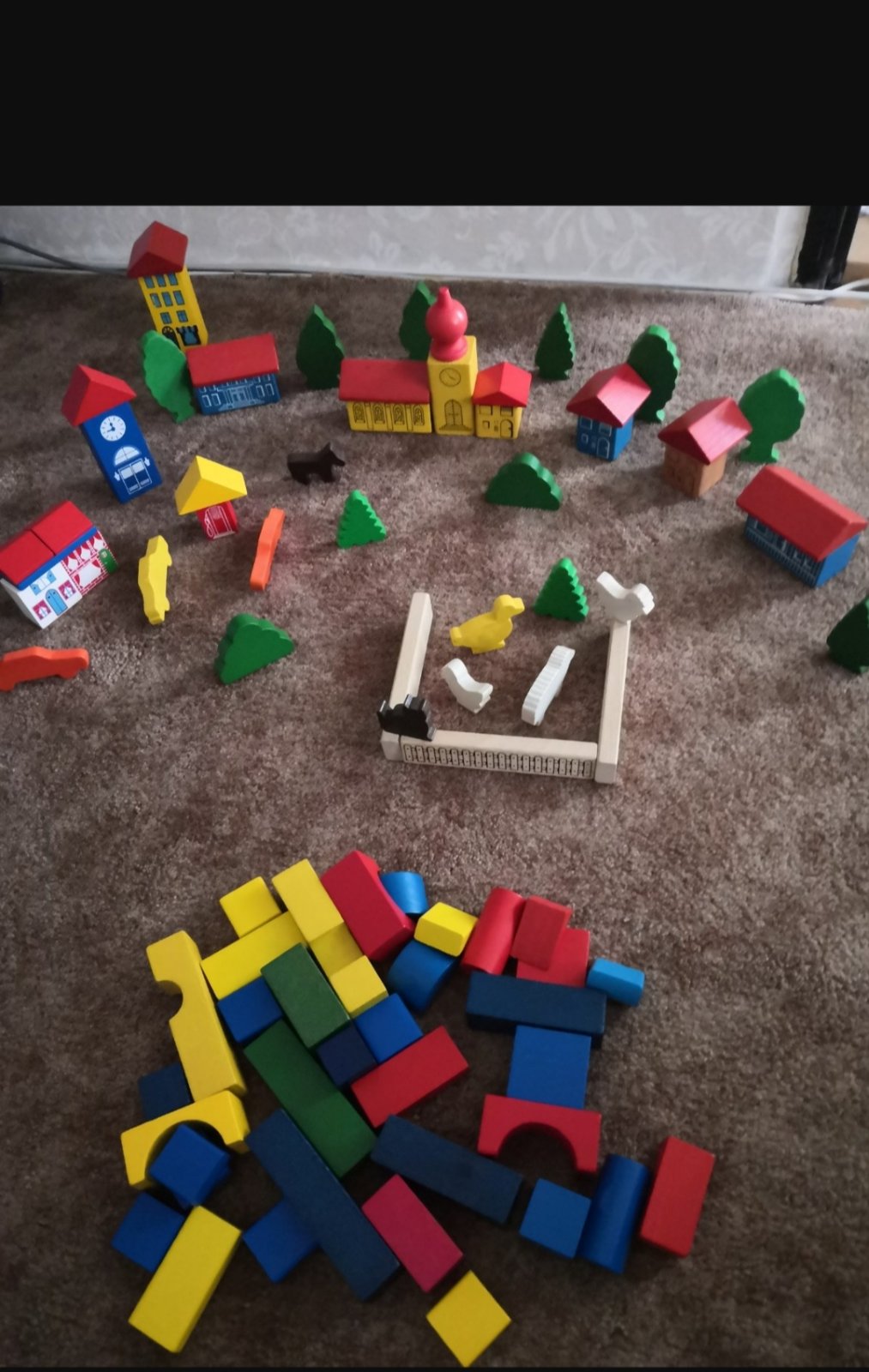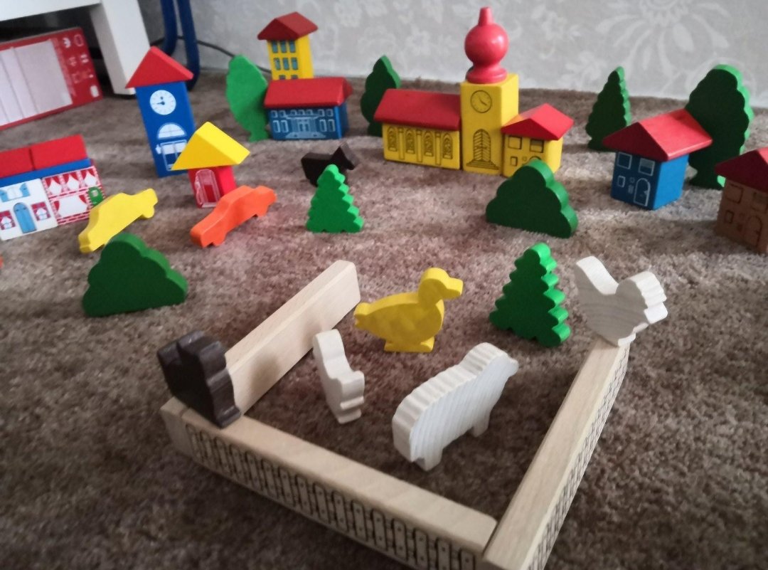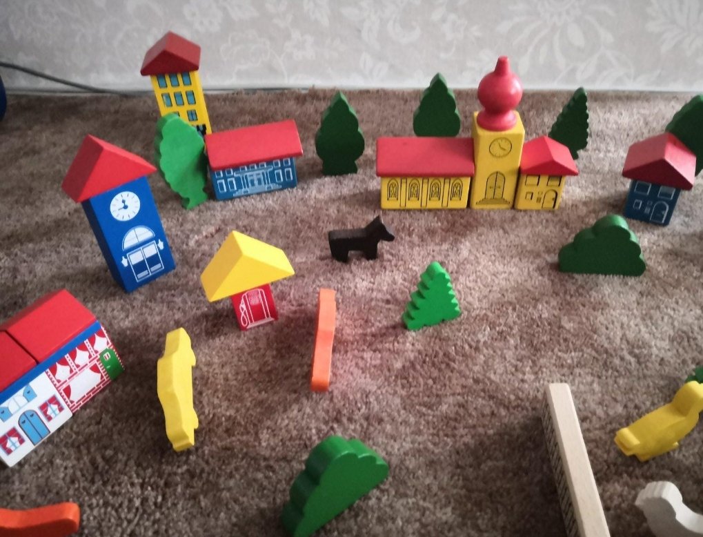 Rôzne kocky dokopy z troch rôznych sád, mestečko, zvieratká, stavebné kocky, strechy...