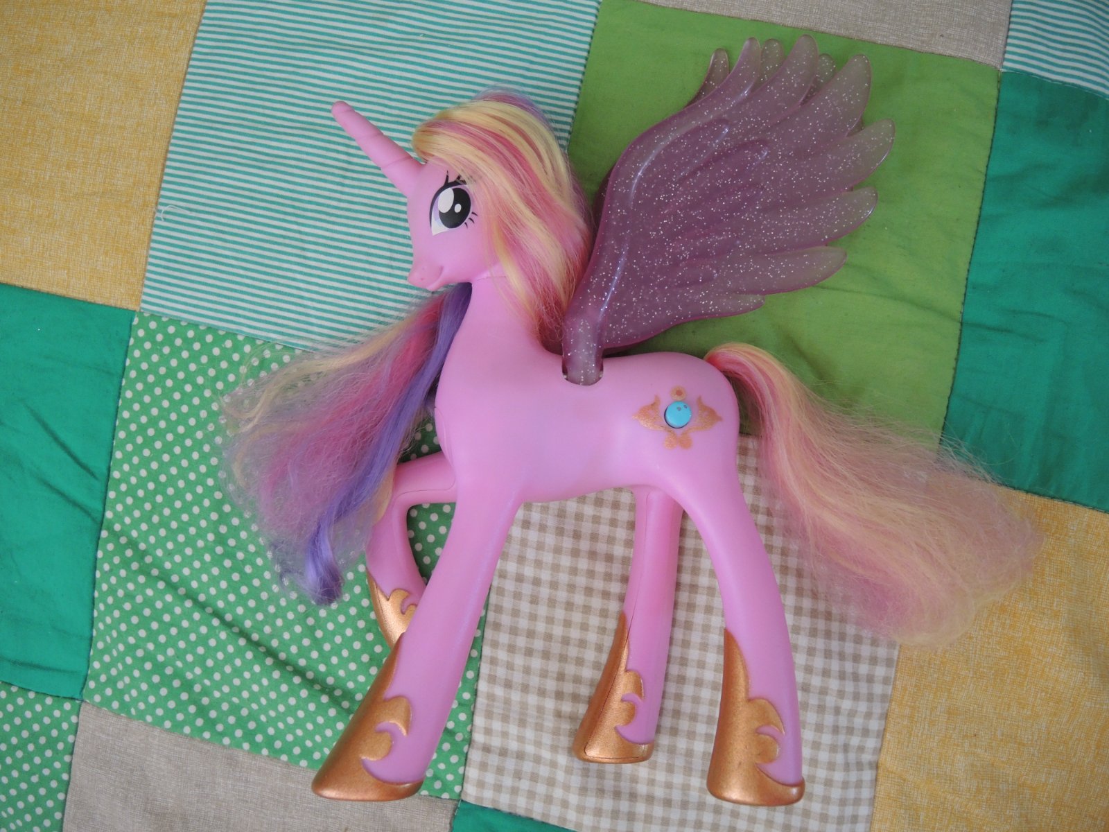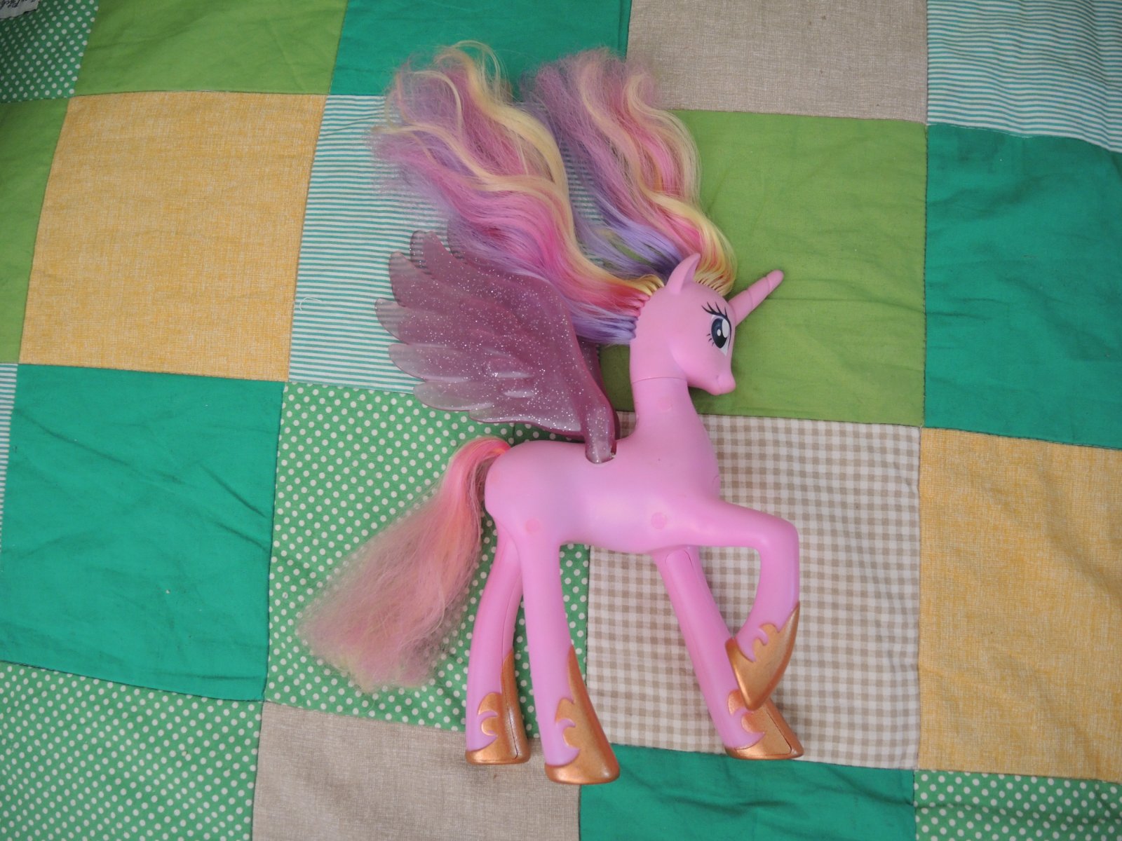 Predám krásneho väčšieho poníka, originál My little pony. Je v krásnom hranom stave. Hlavička sa dá točiť do strán. Hrá a krídla svietia. Dcérka ho mala veľmi rada. Sem tam sa nájdu jemnučké škrabančeky na zlatých kopýtkach, ale len jemné z hrania, na tej zlatej farbe to nie je tak viditeľné a žiaľ na zelenom zapínaní je kúsoček oškreté. Viď foto. Sú tam akoby 2 bodky ... Ale dúfam, že aj napriek týmto chybičkám sa niekomu zapáči. .... Hrivu a chvost má pekné, umyté, dajú sa ľahko česať., ale už nie sú ako za nova. Predávam koníka bez bateriek. Koník je plne funkčný. Výška koníka 25 cm a šírka 15 cm.