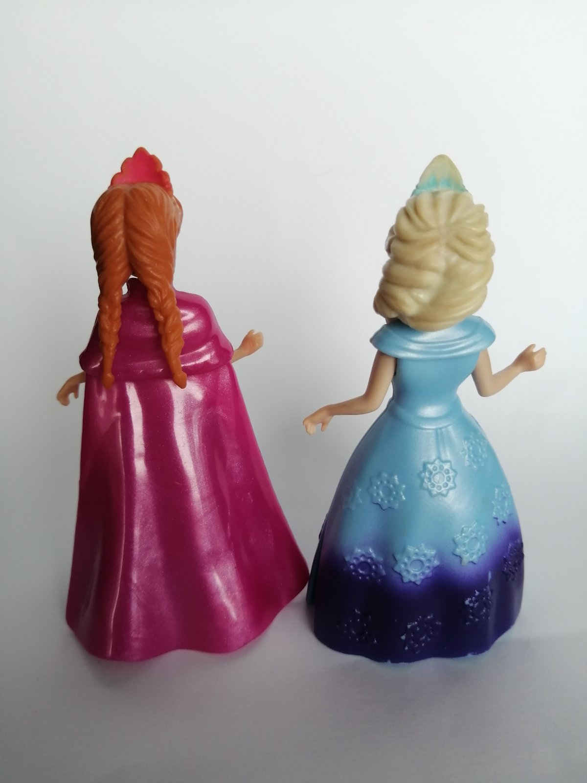 Bábiky magic clip, princezné z Disney rozprávok, šaty sú na spôsob štipca, tak sa otvárajú a prezliekajú, sú pevné, nie gumové, dajú sa dať dole a prezliekať s ostatnými šatami bábik Magic clip, sú hrané, hýbu ručičkami aj nožičkami, dajú sa zohnúť v páse a posadiť