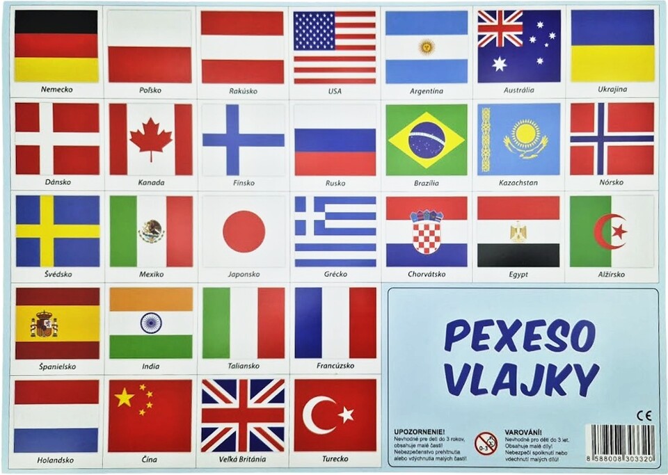 Pexeso obsahuje 32 dvojíc s rovnakými obrázkami, hra je určená pre 2-4 hráčov.