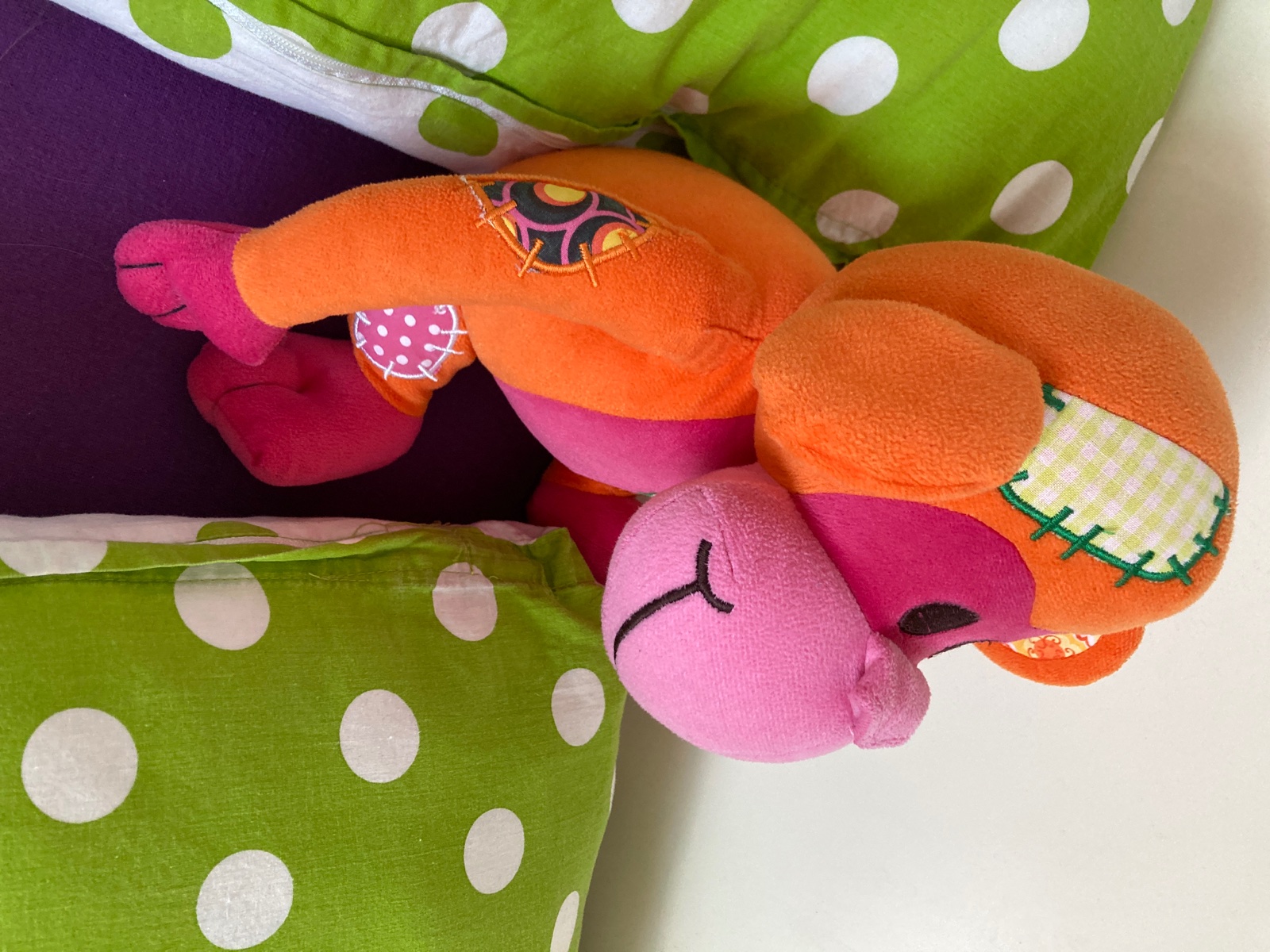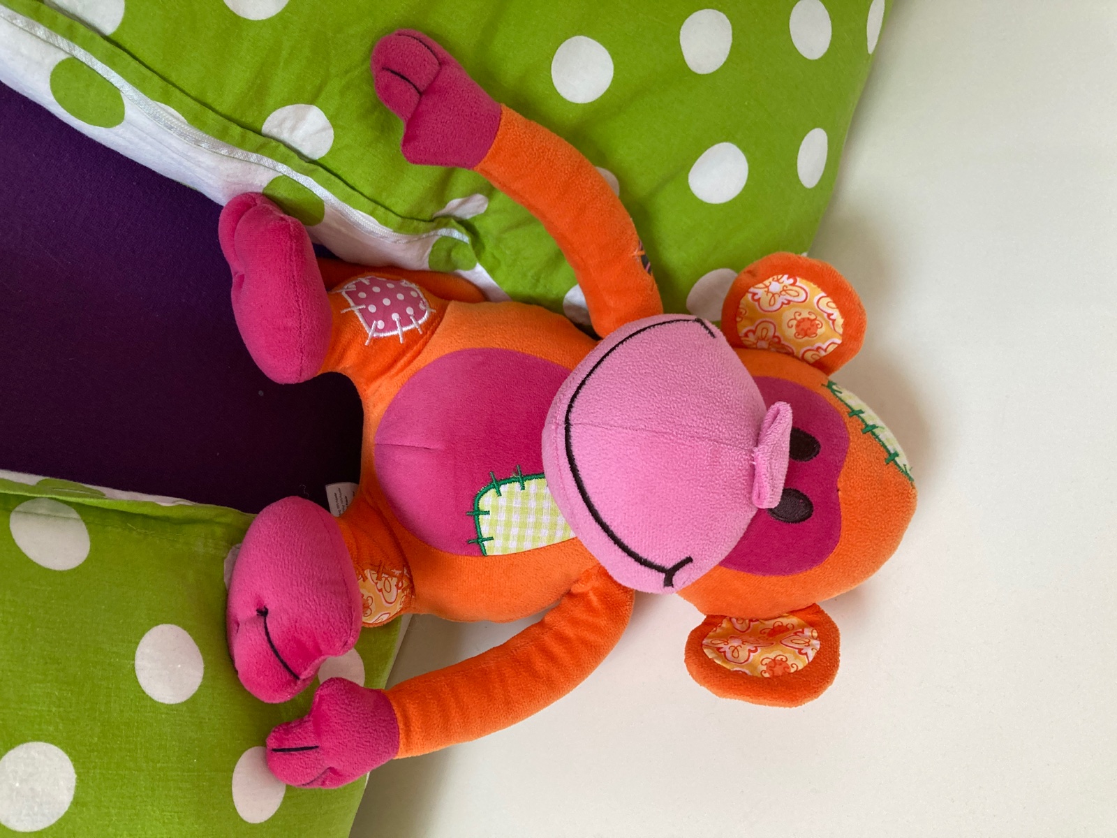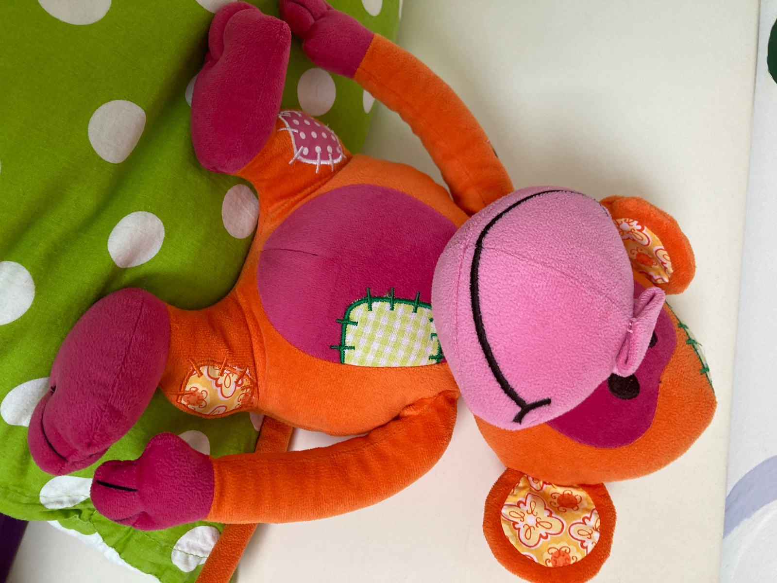 Značka Fisher price. Hrá upokojujúce melódie, bruško sa pohybuje hore dole, lampa svieti, hračka dýcha, bije mu srdiečko. Toto všetko sa dá zvlášť vypínať podľa potreby. Super pomôcka na zaspávani...