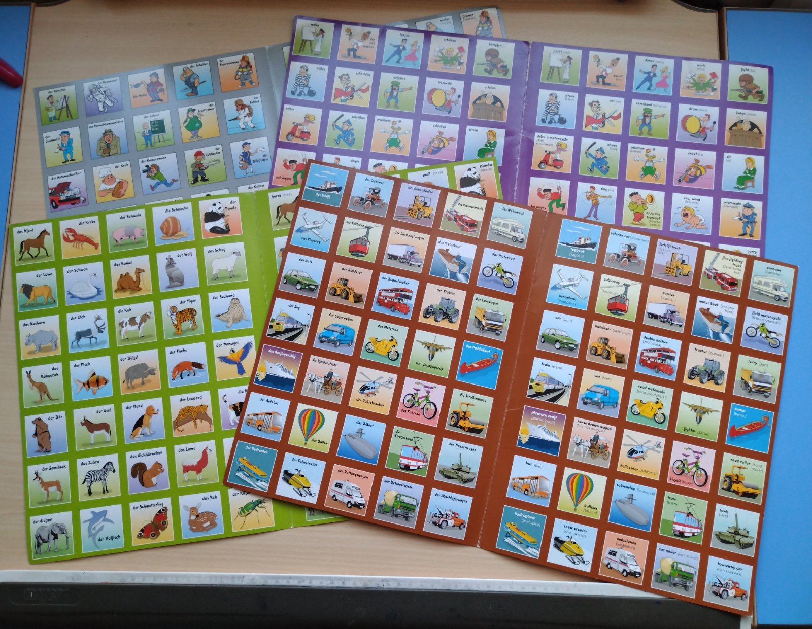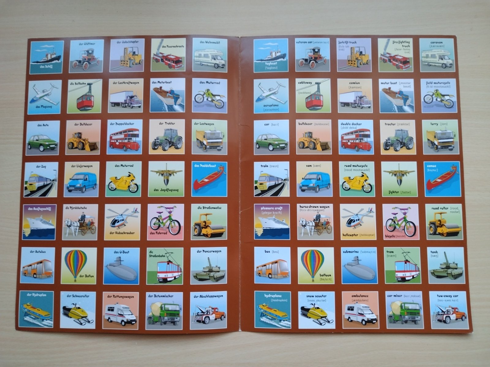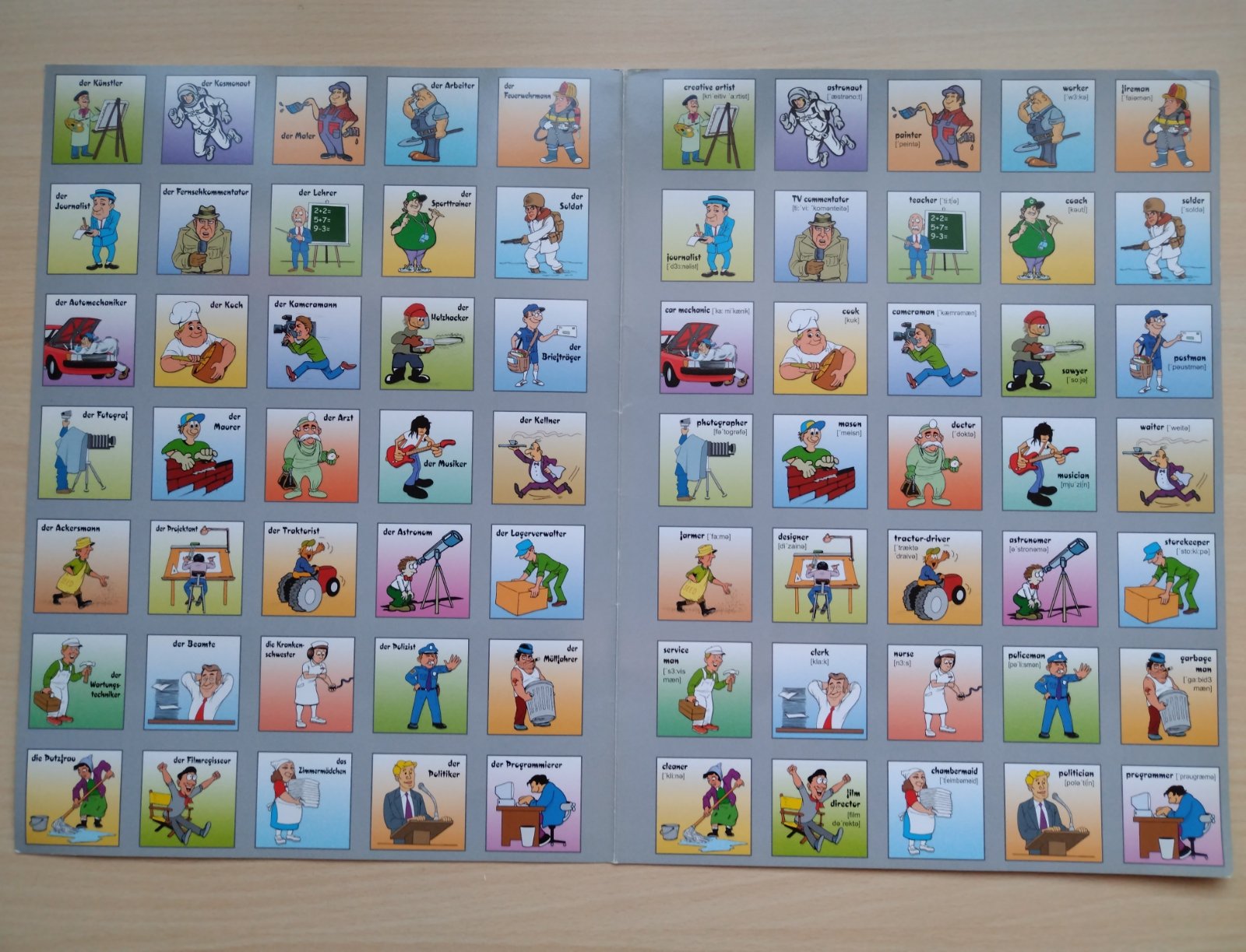 Nemecko-anglické pexeso - 4 kusy s témami: Povolania1, Povolania2, Zvieratá, Dopravné prostriedky.
