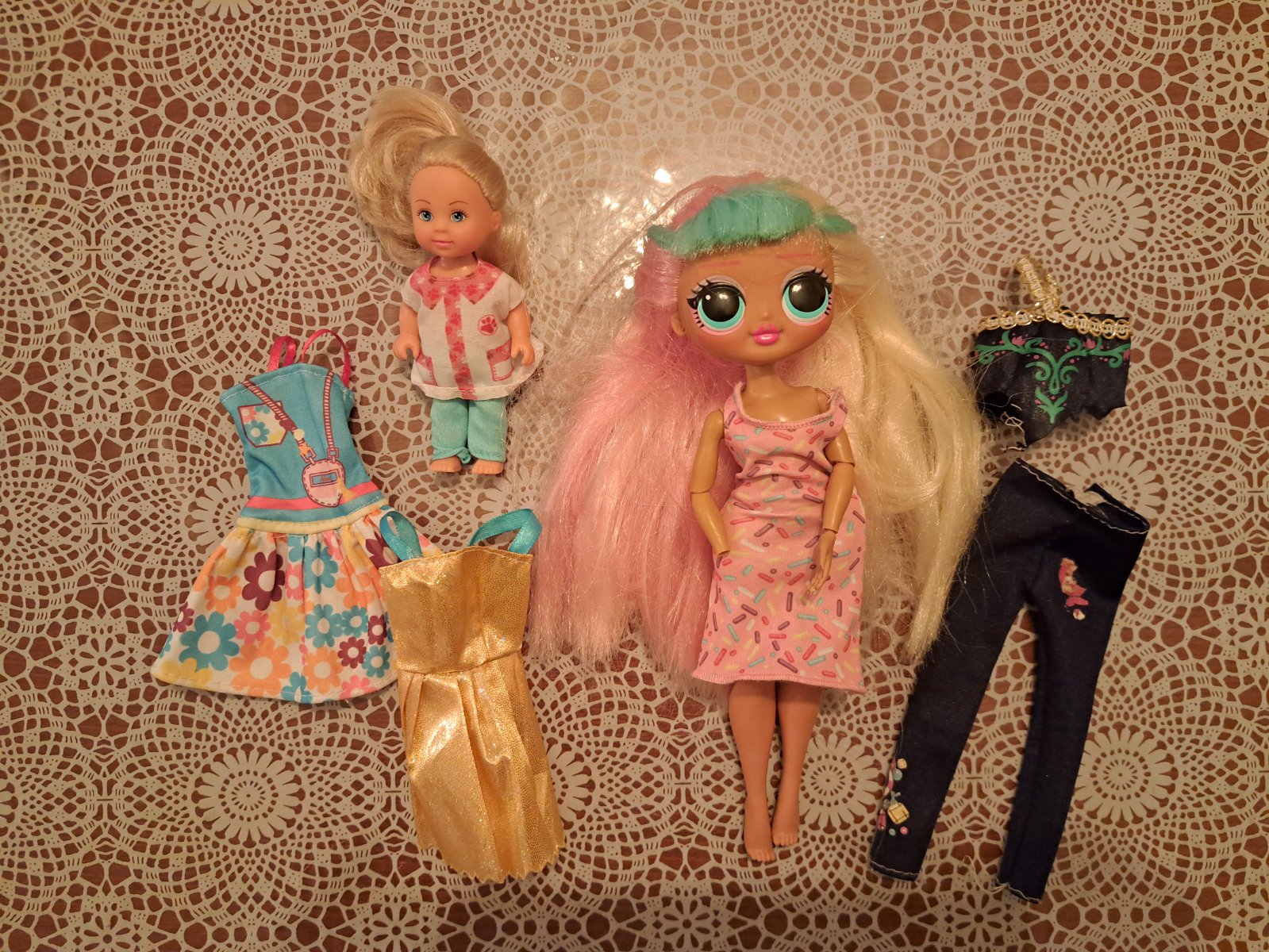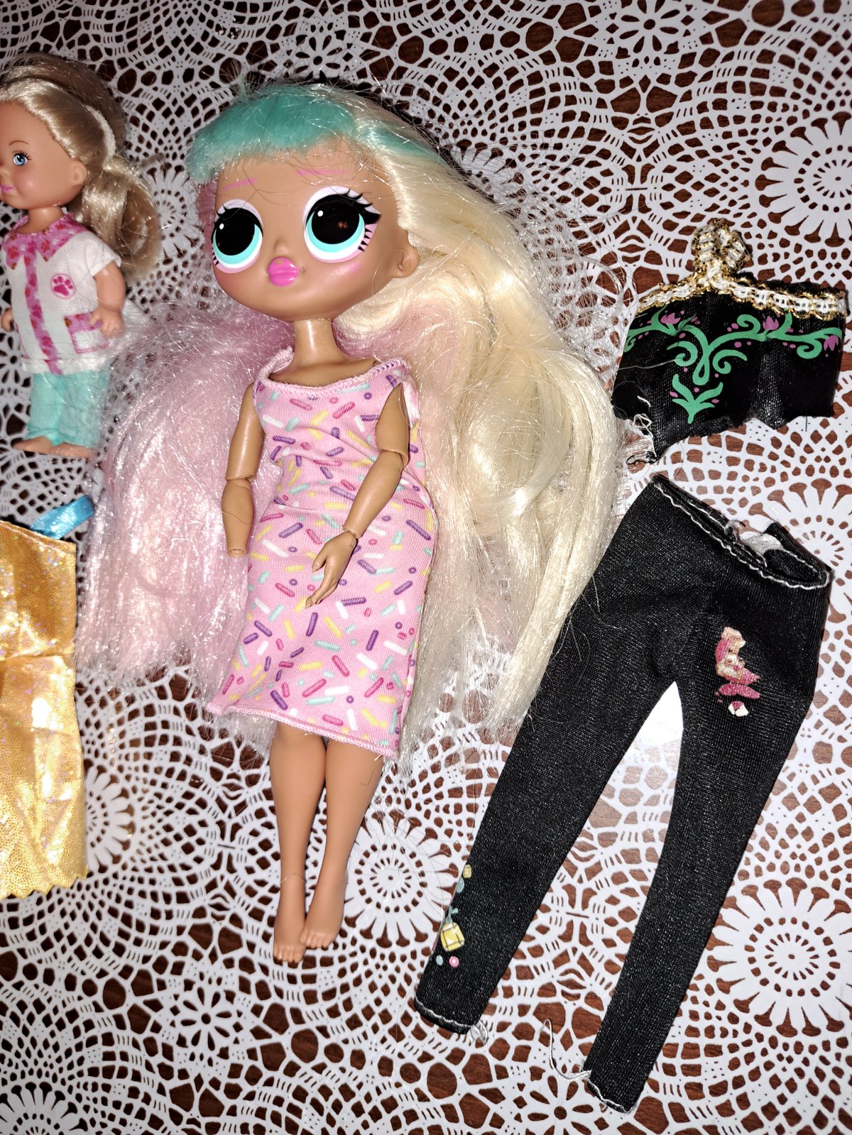 LOL OMG s 1amputovanou rúčkou. Dievčatko je v top stave. Prikladám veľa oblečenia a doplnkov
