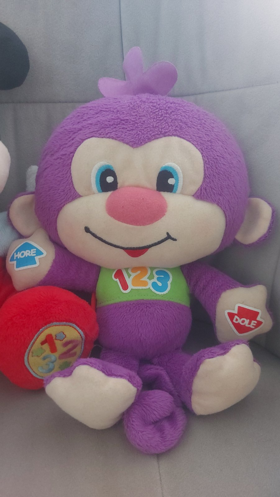 Značka Fisher price. Hrá upokojujúce melódie, bruško sa pohybuje hore dole, lampa svieti, hračka dýcha, bije mu srdiečko. Toto všetko sa dá zvlášť vypínať podľa potreby. Super pomôcka na zaspávani...