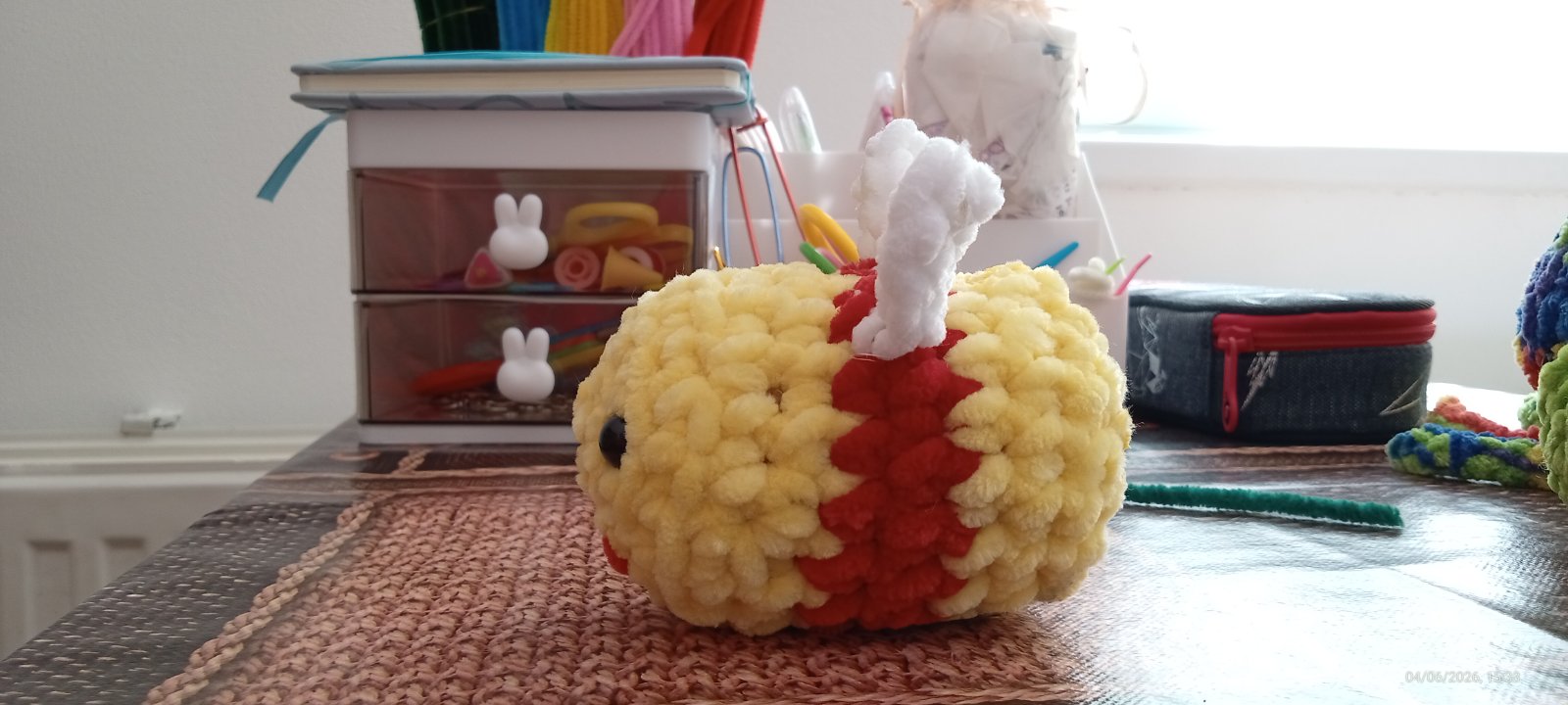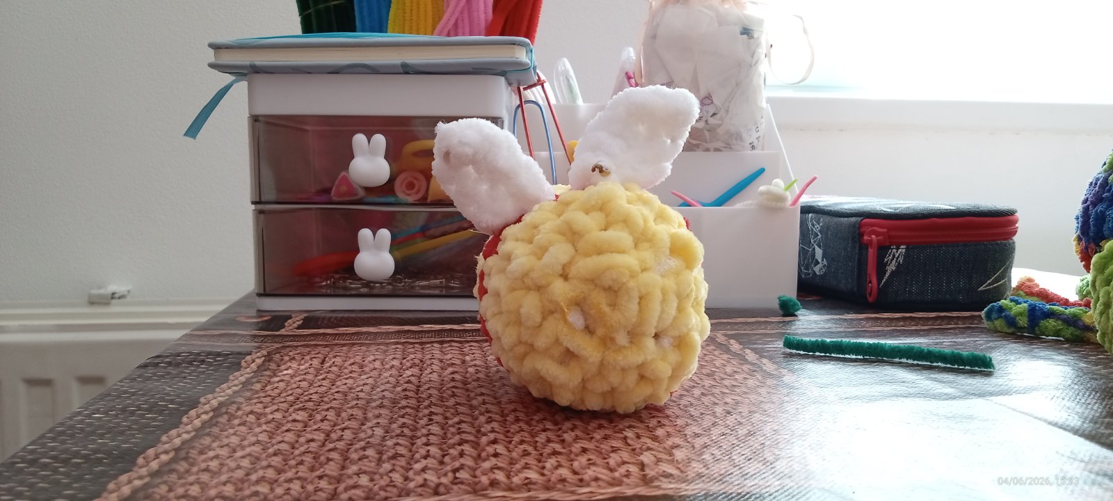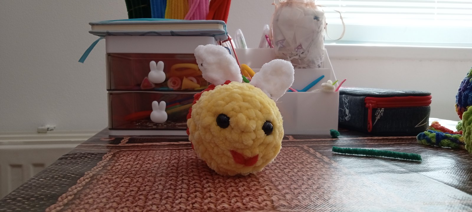 Táto včela je z huňatej vlny. Ma čisto biele krídielka. Urobím hocijakú akú budete chcieť. Teším sa na vaše objednávky. Môžete aj si objedná aj kľúčenku ktorá bude za 1€. Do výšky má 4,5 CM a do šírky má 5,6 CM a do dĺžky má 8-9 CM. Ďakujem za každú objednávku. Pekný deň. S pozdravom hackujsk- Laura.