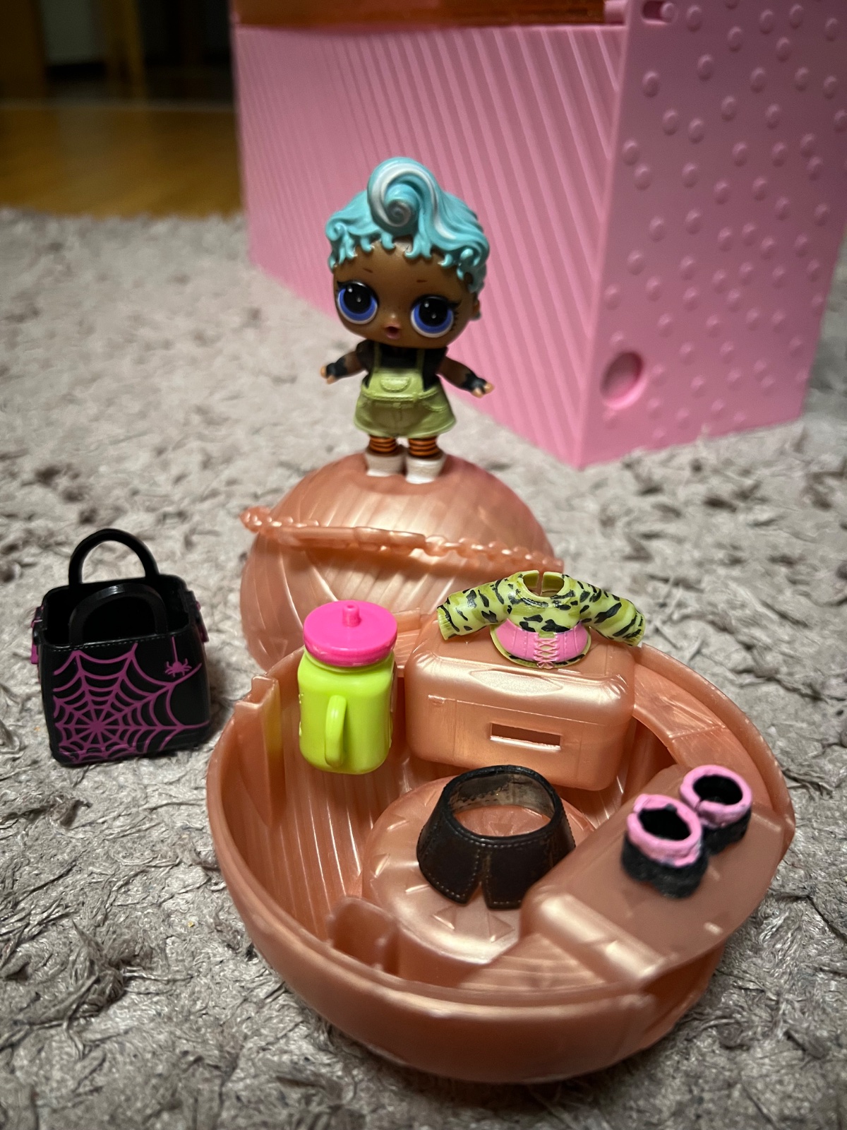 LOL babika s prislusenstvom vid foto Domcek v guli, topanky a overal na babike, babika, topanky,sukna a tricko nahradne, flasa a taska.