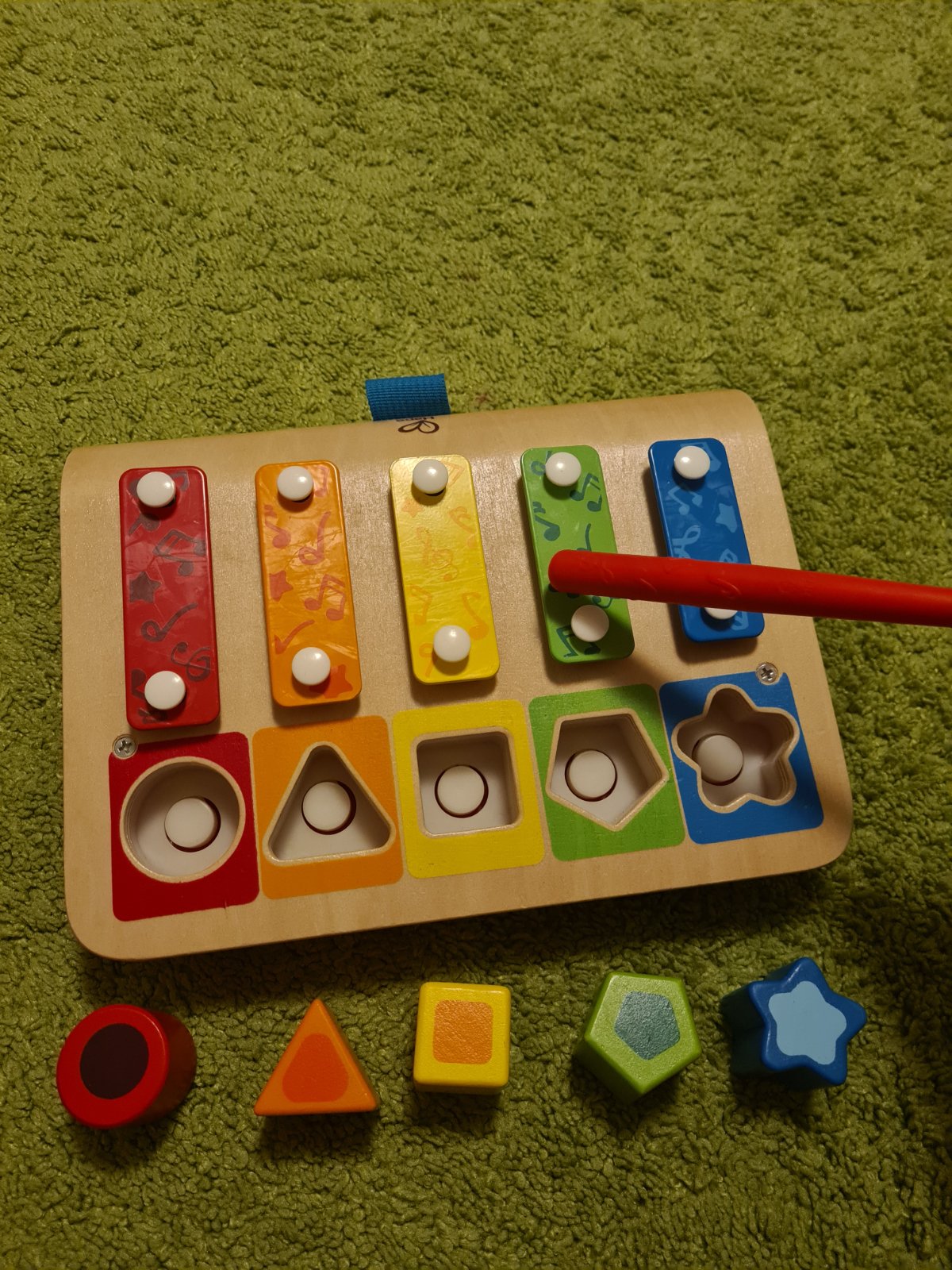 TOP stav,málo hrané. Multifunkčný Xylofón učí hru na klavír a triedenie a vkladanie tvarov. Rozmer: 30× 9×24cm. Sada obsahuje 7 dielov. Vek: 12 m+