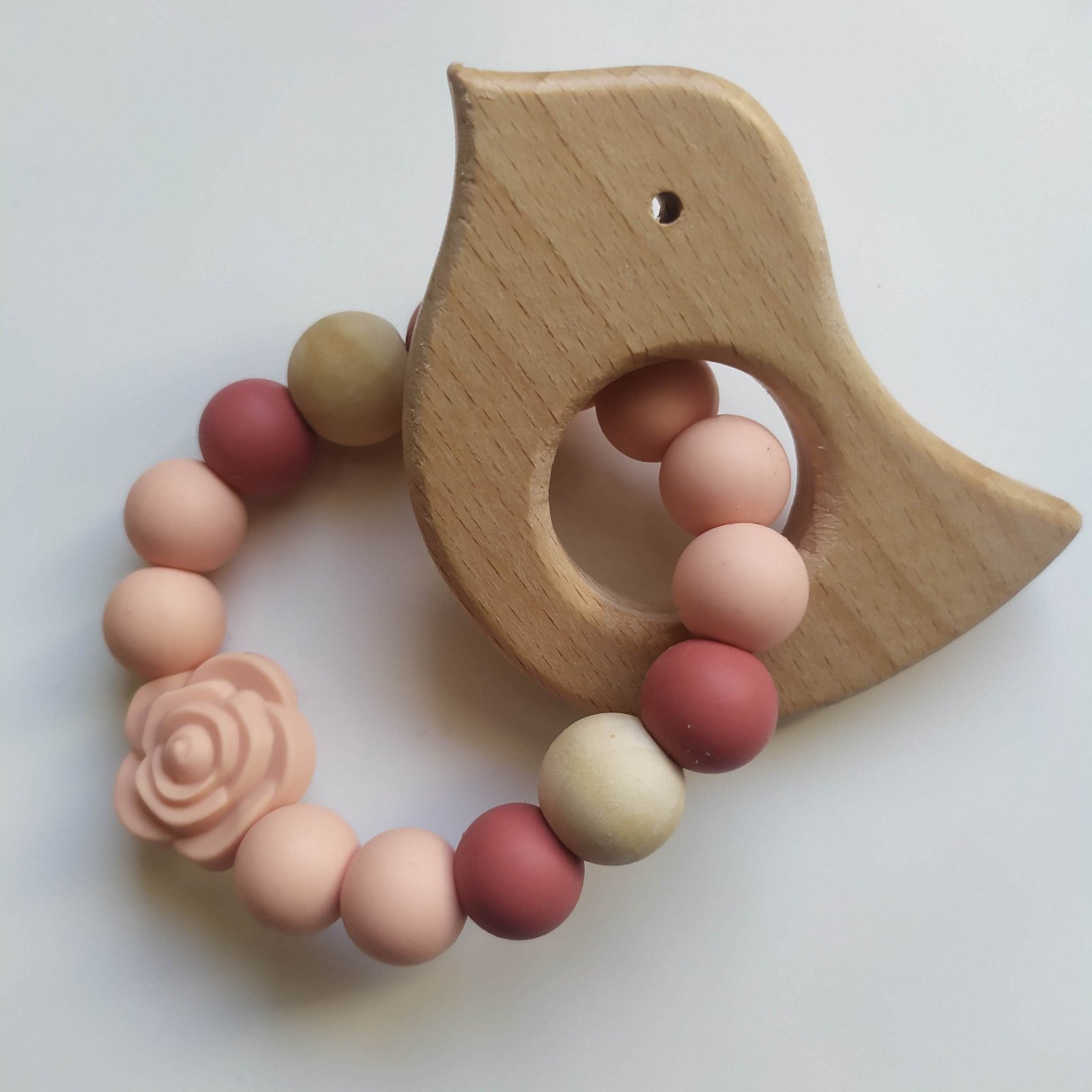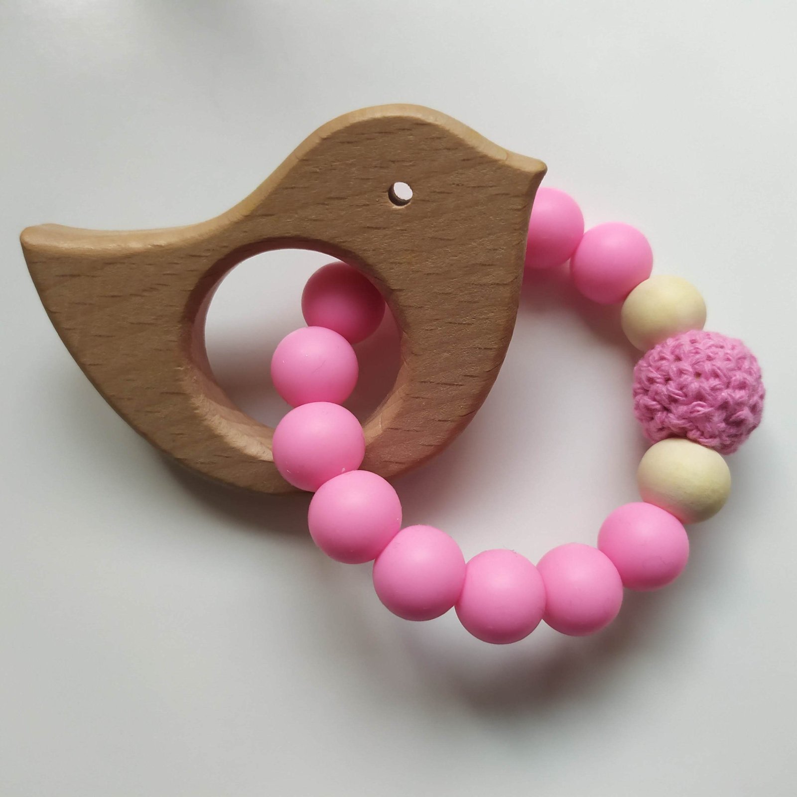 Drevený vtáčik prináša kúsok prírody do malých ručičiek a jemne masíruje ďasná pri prerezávaní zúbkov.