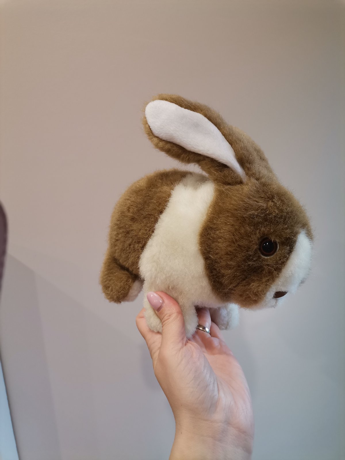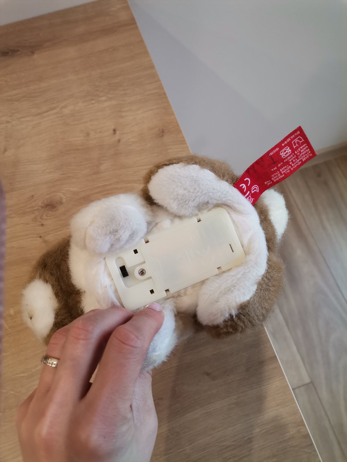 Vydáva zvuky a chodí, hopsa. Kupované v Prahe v hrackarstve Hamleys.
