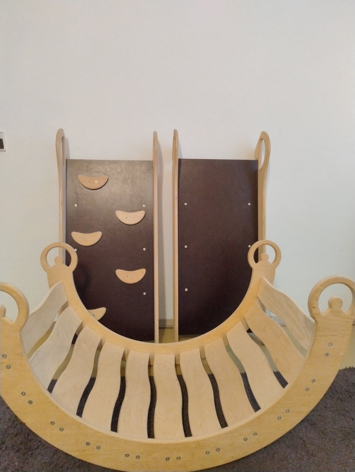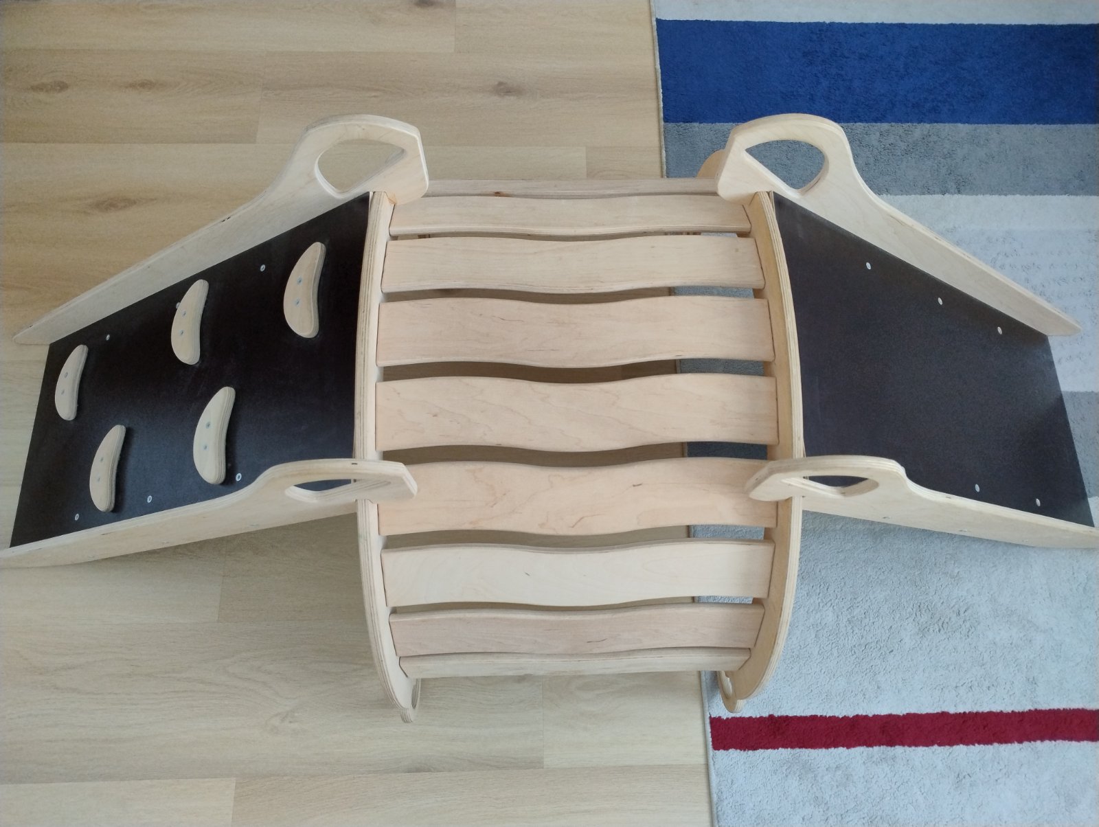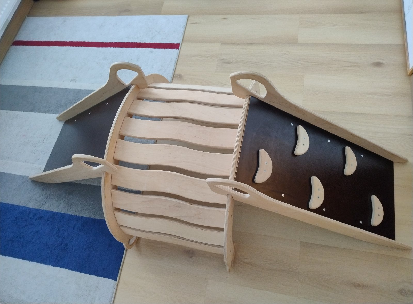 4v1: Drevená hojdačka v sete so šmýkačkou, tabuľou a lezeckou stenou