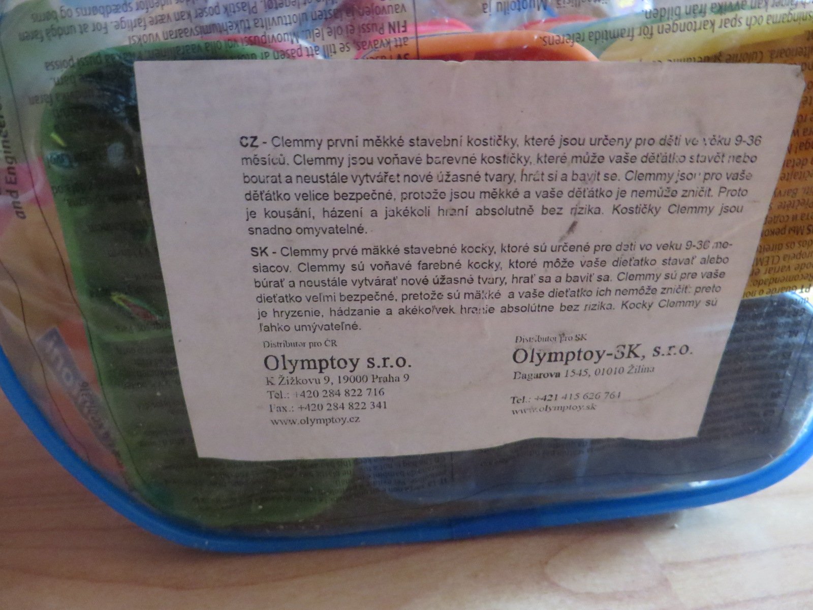 Predám balenie Clemmy mäkkých kociek, vhodných pre najmenšie deti od 9-36 mesiacov. Je ich 24 ks, sú gumené a mäkké, na prvé stavanie vežičiek a trénovanie motoriky. Po nich sme prešli už na drevené kocky a neskôr na Lego Duplo. Máme ich aj s obalom, ale je na ňom pokazený zips. Cena za toto balenie je 10,0€, máme ešte potom 9 ks samostatných kociek - viď posledné foto. Tie pridám ku baleniu, spolu ich teda všetkých je 33 ks.