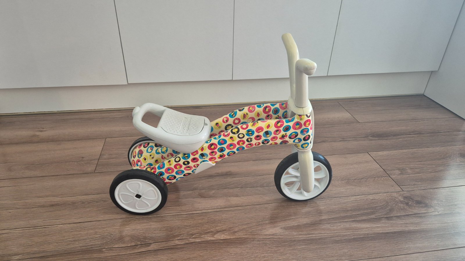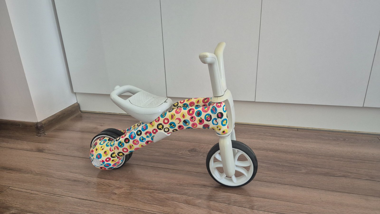 Chillafish trojkolka 2v1 Bunzi, farebná grafika. Odrážadlo a trojkolka 2v1 Chillafish Bunz je vyrobené z veľmi odolného a ľahkého plastu. V sedle odrážadlá je skrytá skrinka na úschovu potrebných vecí dieťaťa. Výška sedadla od zeme: 22-25 cm (v najnižšom bode)