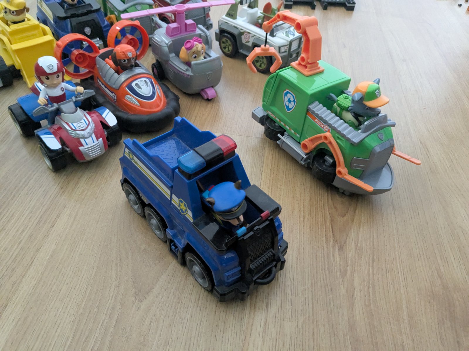 Autíčka labková patrola, najradšej by som predala všetky spolu, boli kupované v Dráčiku, cena za kus 10e. Bez poškodení, niektoré postavičky majú ošúchané ňufáčiky, ale to sa veľmi rýchlo stane aj novým. Väčšie autíčka -policajné a smetiarske 15e za kus. Poštovné podľa aktuálneho cenníka alebo osobný odber Pezinok.