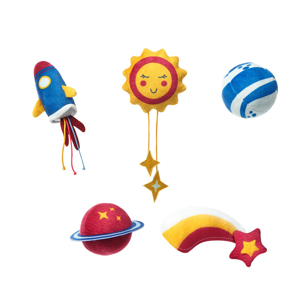 Farebné hračky pripevnené na kolotoči dávajú dieťaťu pocit bezpečia a podporujú rozvoj fantázie vytvorením jedinečného príbehu o dobývaní vesmíru.