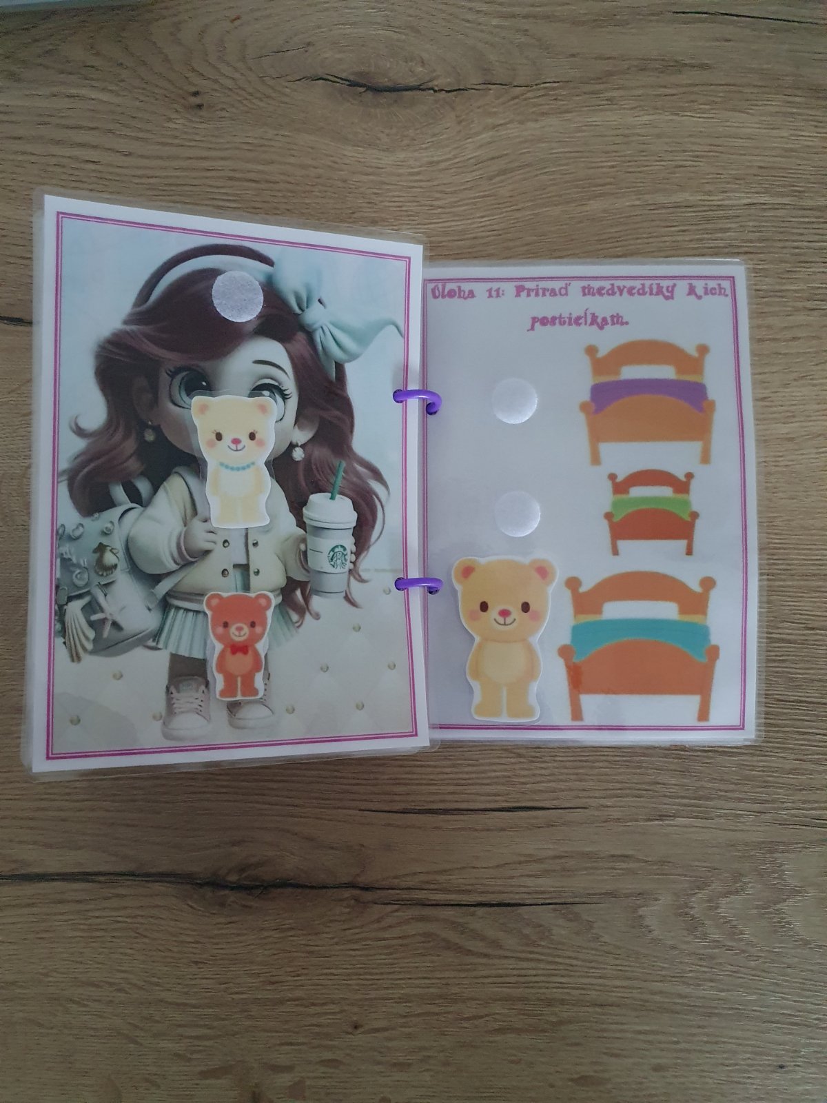 Pracovný zošit na suchý zipa dievčatko od 1 rok.