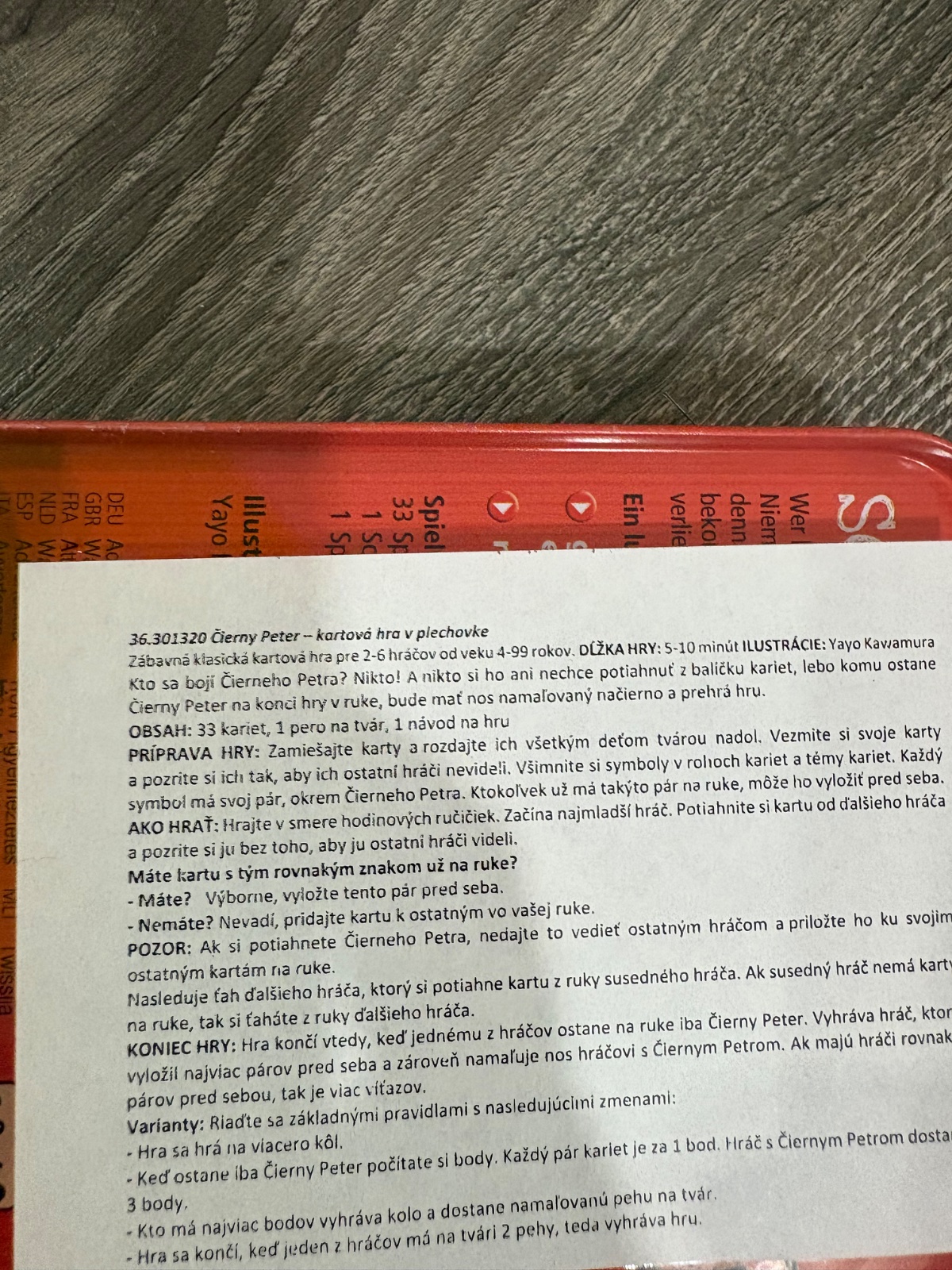 Počet hráčov: 2 - 6 osôb Trvanie hry: 5 - 10 min Odporúčaný vek: 4 roky a viac