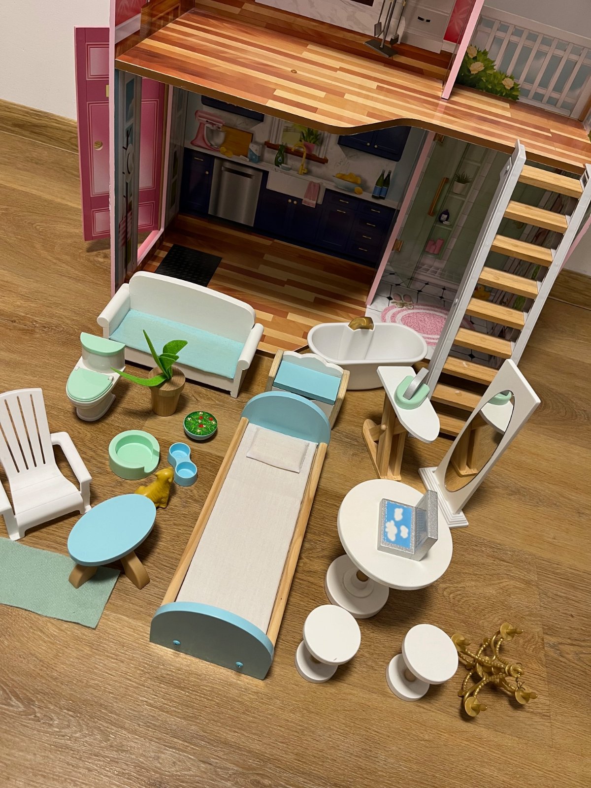 Predám drevený domček pre bábiky značky KidKraft. Zo všetkým príslušenstvom ako ako je na fotke. Krásny interier. TOP stav.