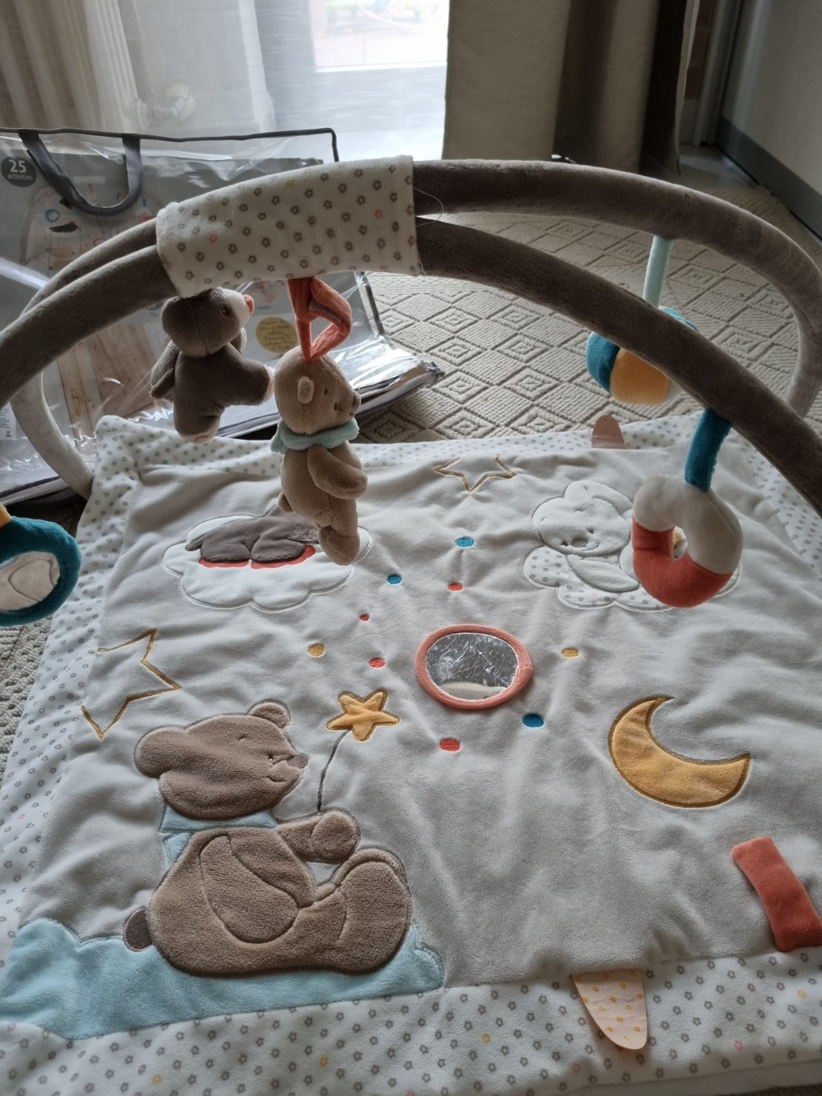 Veľmi mäkká a pohodlná deka s hrazdičkou a mnohými aktivitami pomáha rozvíjať detské pohyby a zmysly.
