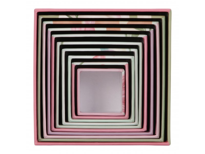 Najmenšia kocka má 5 cm a najväčšia má 14 cm. Po skončení hrania kocky ľahko uložíte zložením do seba.
