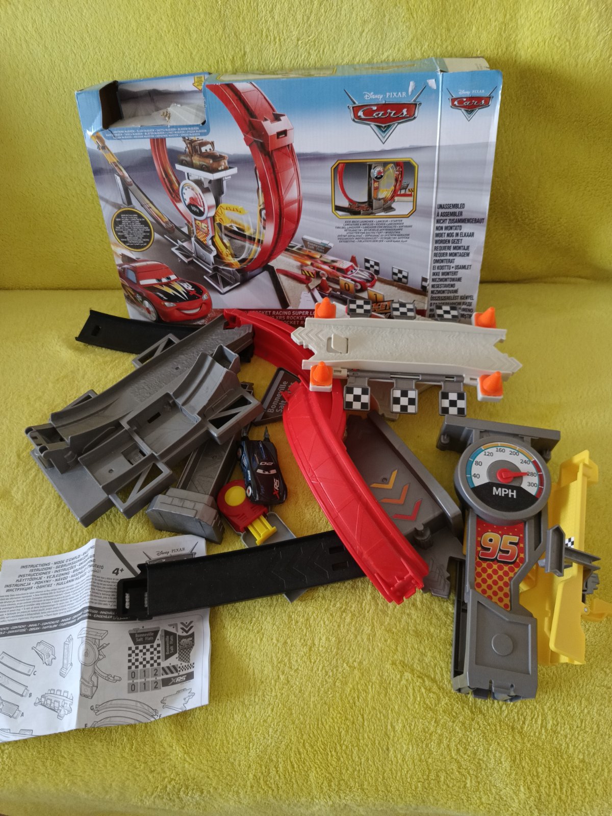 Blesk McQueen zvládne drsné kaskadérske kúsky v super-loopingovej výzve Disney Pixar Cars XRS Rocket Racing! Štartér posiela vozidlá po rampe rekordnou rýchlosťou, zatiaľ čo z ich výfukov šľahajú divoké plamene. Keď vozidlo vystrelí cez slučku, pohyblivý rýchlomer zmeria rýchlosť.