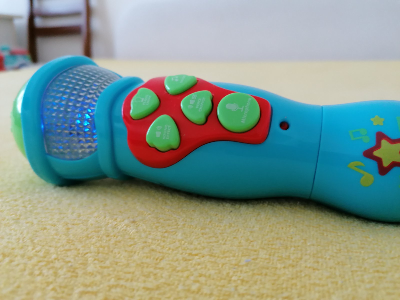 Mikrofón so svetlom, melódiami, meničom hlasu