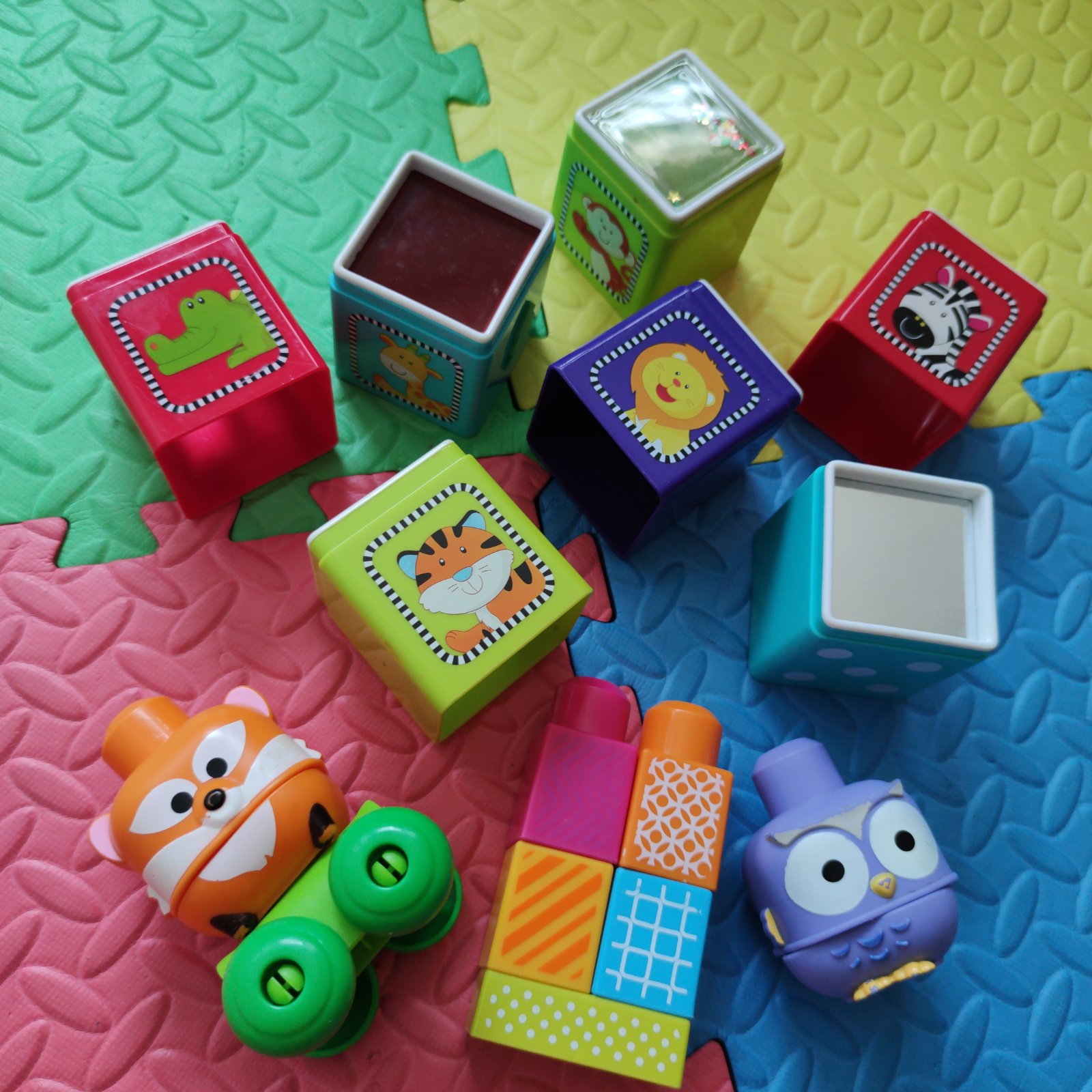Senzorické kocky a Mega blocks jazdiace zvieratka