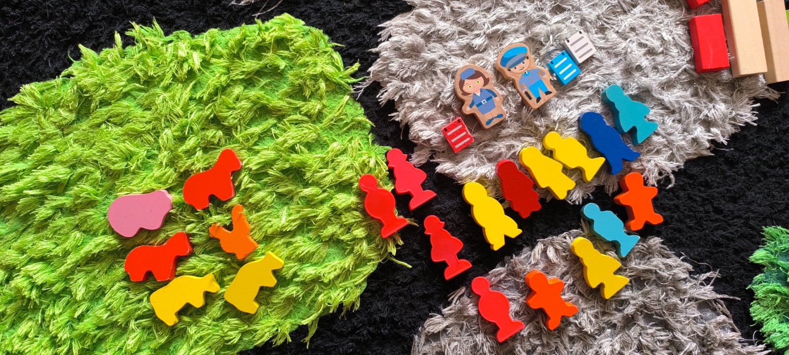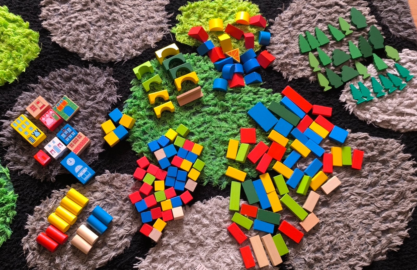 Predám drevené mesto: budovy, strechy, piliere, lavičky, kocky, stromčeky, postavičky, domáce zvieratá. Zostava je funkčná, v peknom stave. Celkový počet zostavy je cca 190 ks.