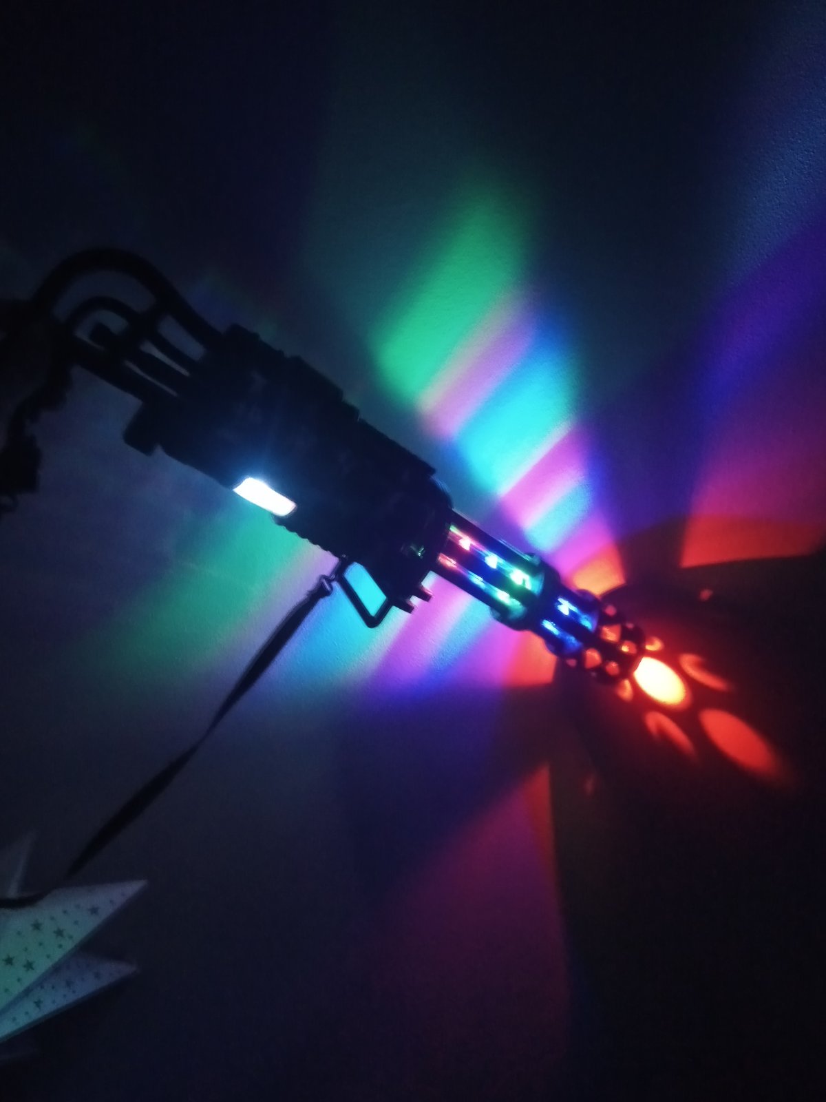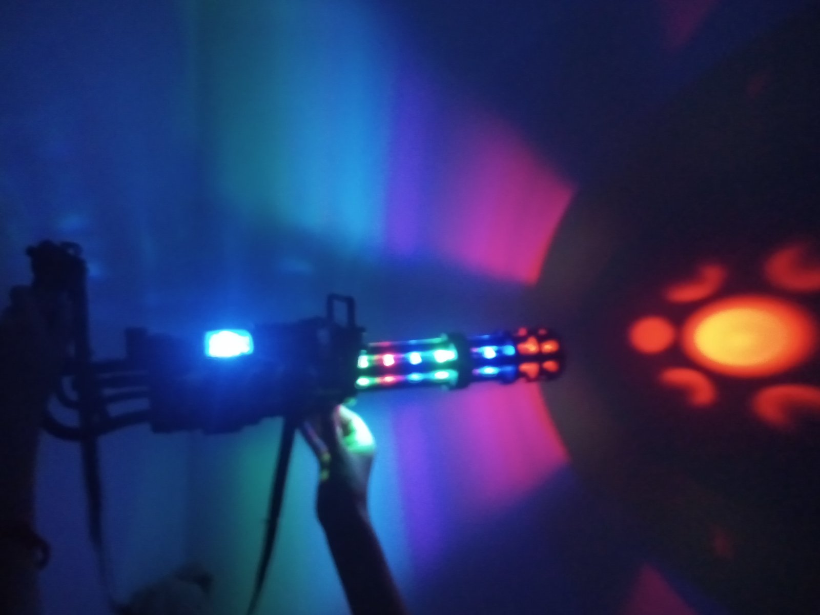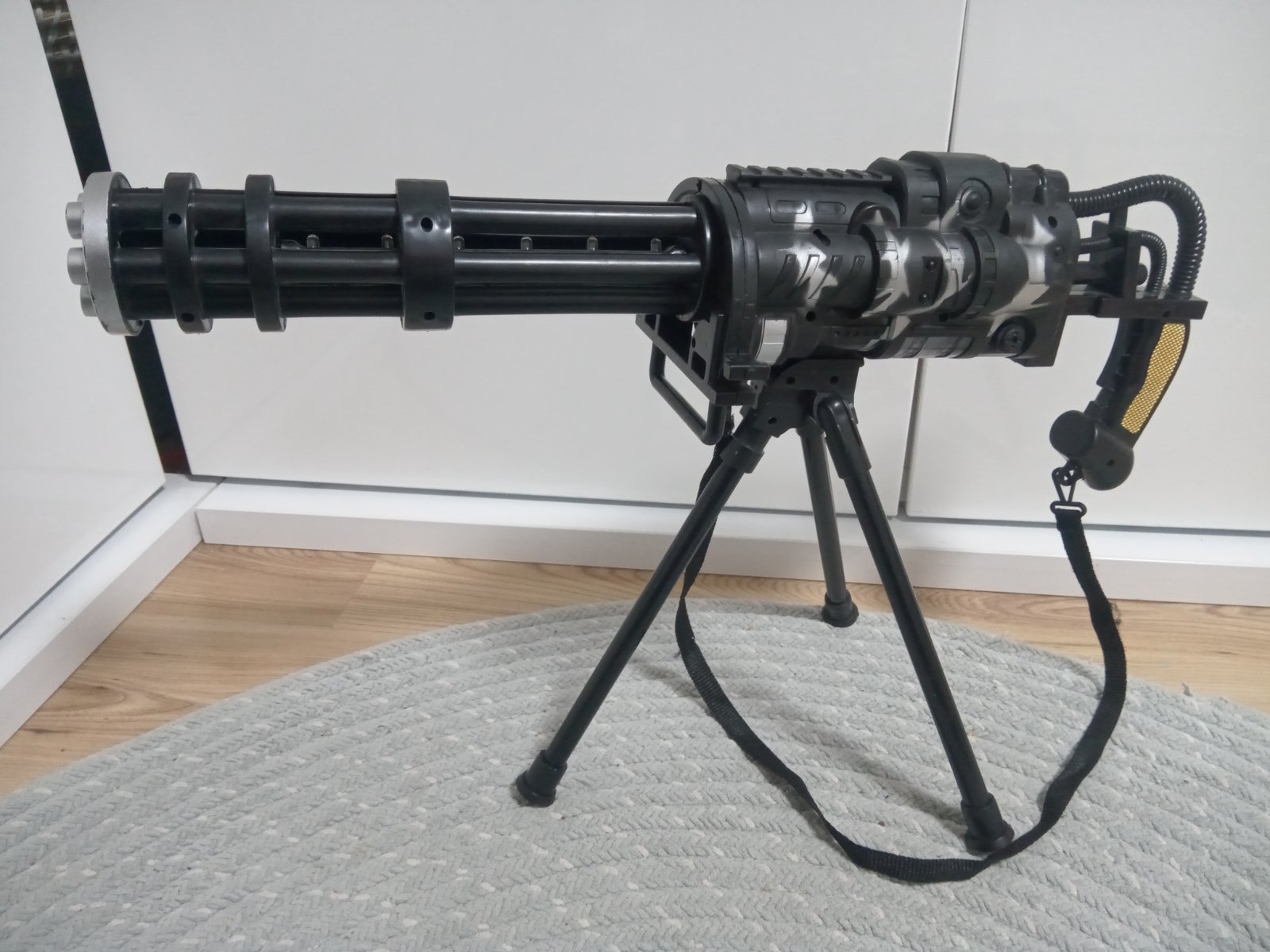 Guľomet svieti pri strielani , vydáva zvuk, na baterky, tie vnútorné svetlá rotuju pri strieľani sa sa dať dole z tej podpery,málo hraný