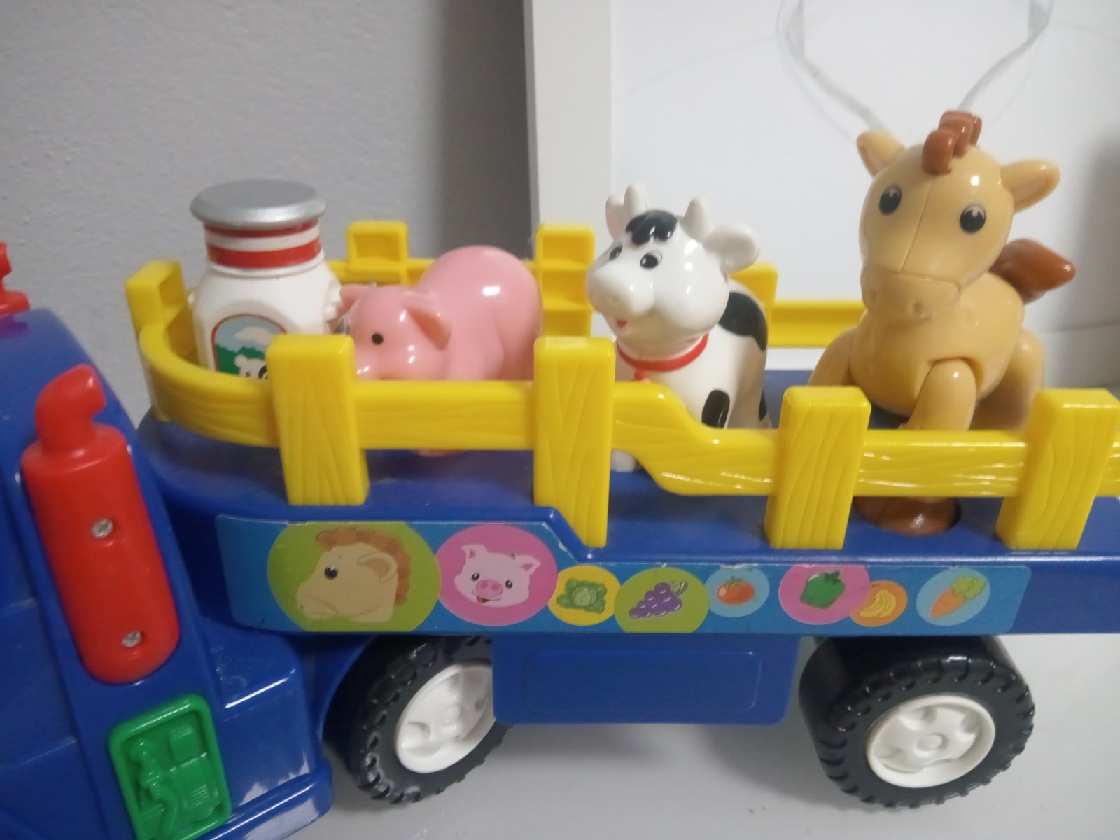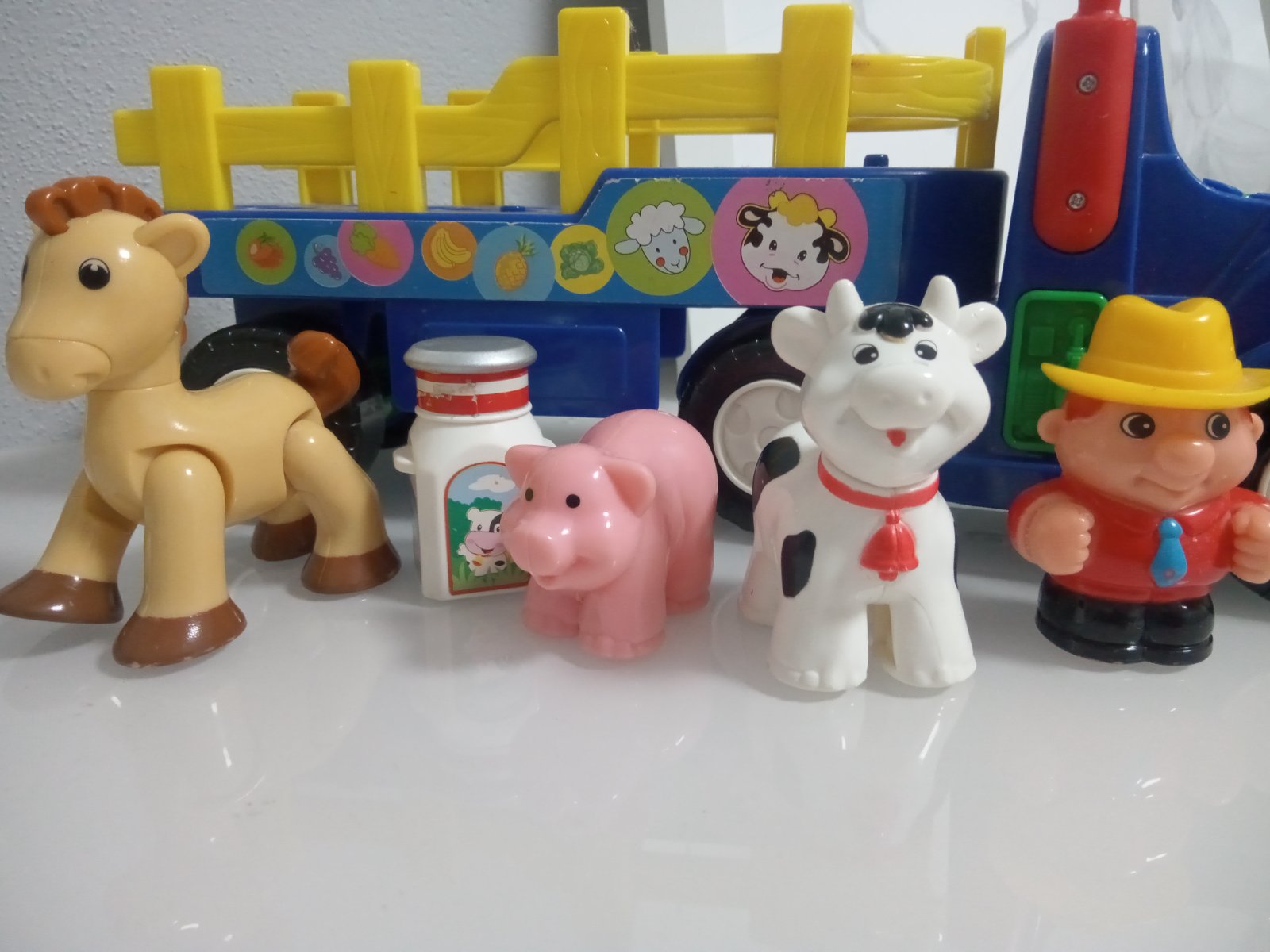 Krásne väčšie autíčko vydáva zvuk štartovania a pieseň old Mac Donald. Zvieratá sa dajú vybrať. Koník má prilepenu nohu na pevnom takže sa nedá otáčať noha ,ale nič tomu nie je. Málo hrané