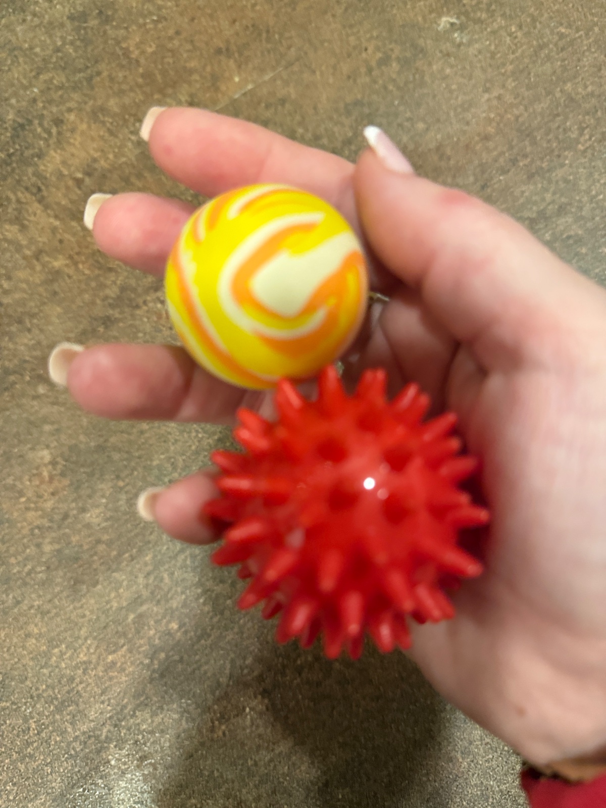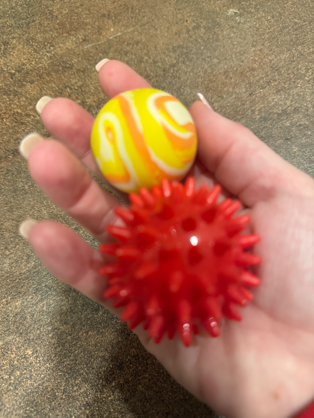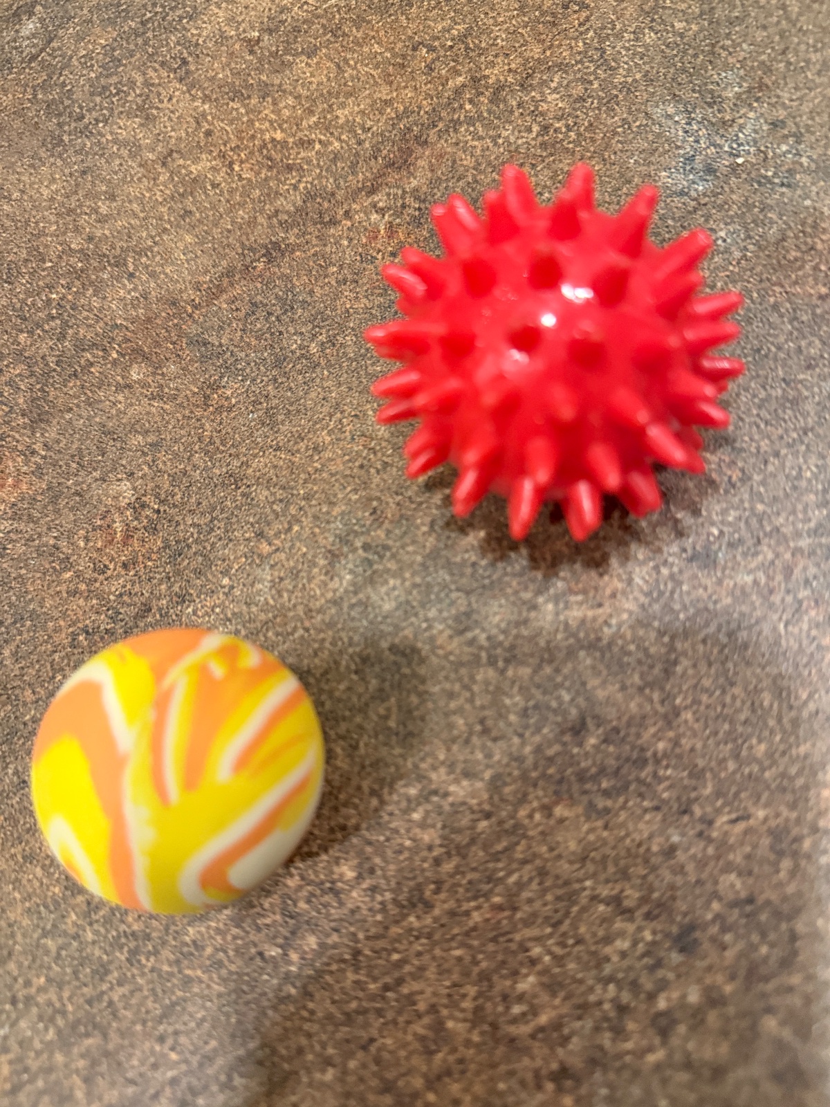 2 malé loptičky veľmi málo používané tá menšia je ťažšia tá druhá je mäkšia trošku pichla vhodná aj na rehabilitáciu