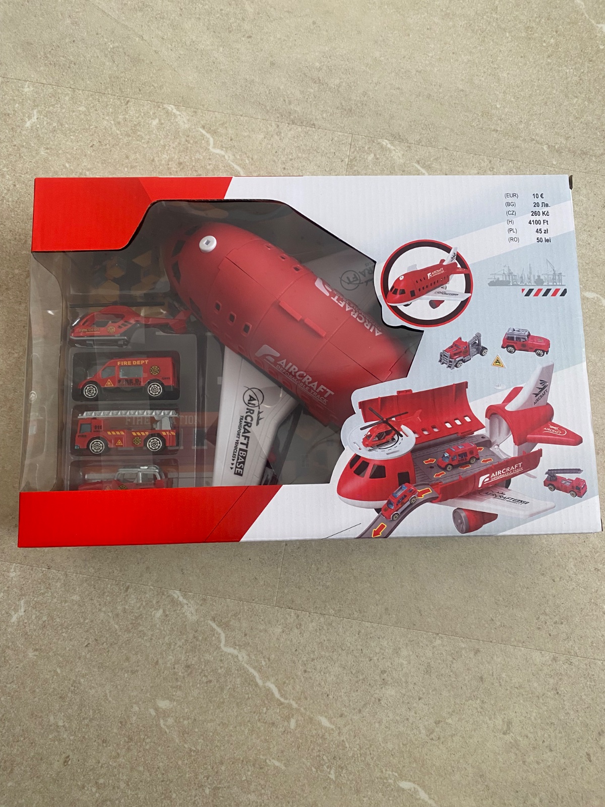 Záchranné zložky v nákladnom lietadle. Súčasťou je heliport, značky, kužele a nájazdová cesta. Zabudnuté, dokonale schované hračky, malý nám už z toho vyrástol. Vhodné ako darček.