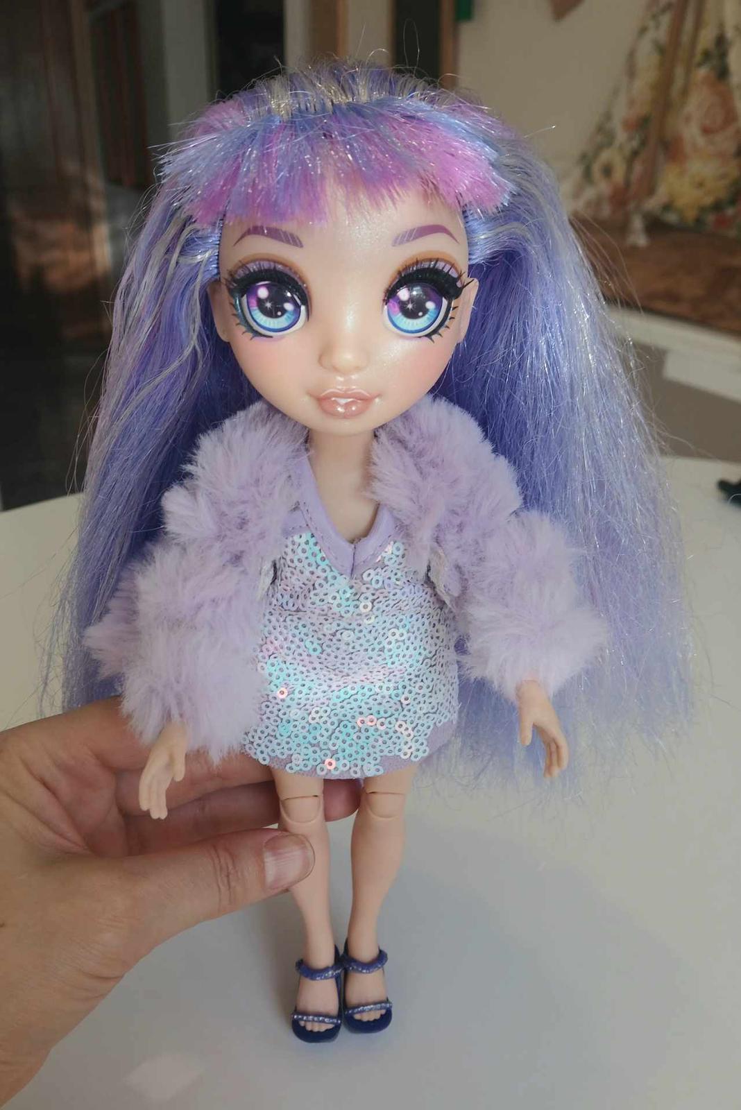 Krásna bábika z kolekcie Rainbow High - Violet Willow jemnej fialovej farby. Bábika má krásne lesklé fialové vlasy, je plne pohyblivá - má ohybné ruky aj nohy. Bábika je vysoká 27cm. Krásny, čistý stav. Cena 8Eur.
