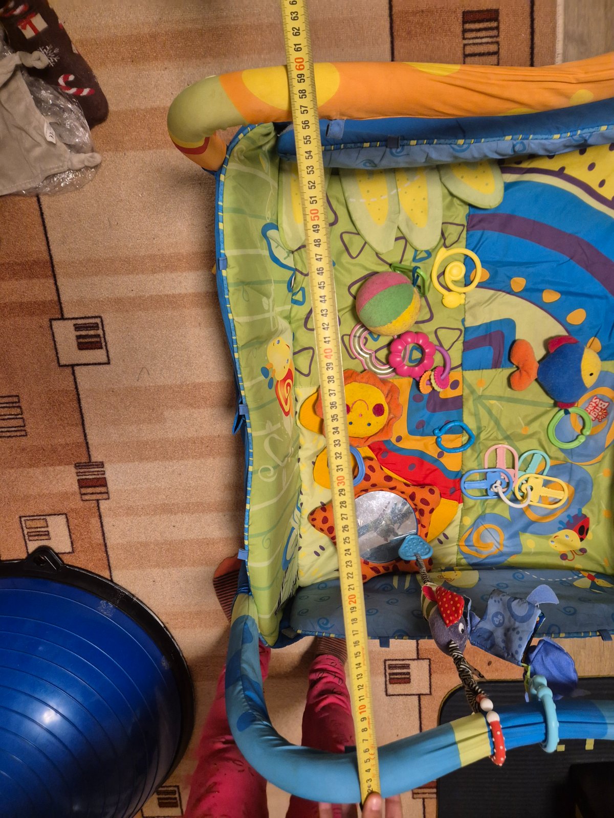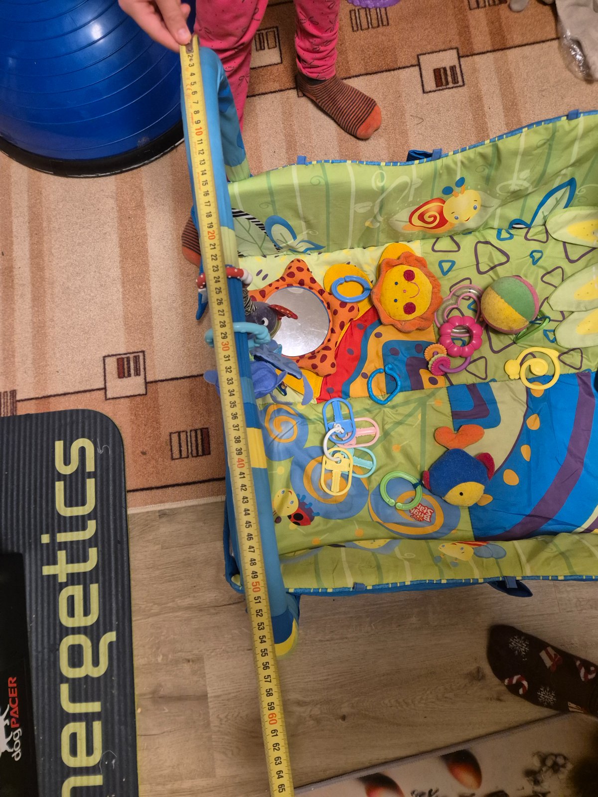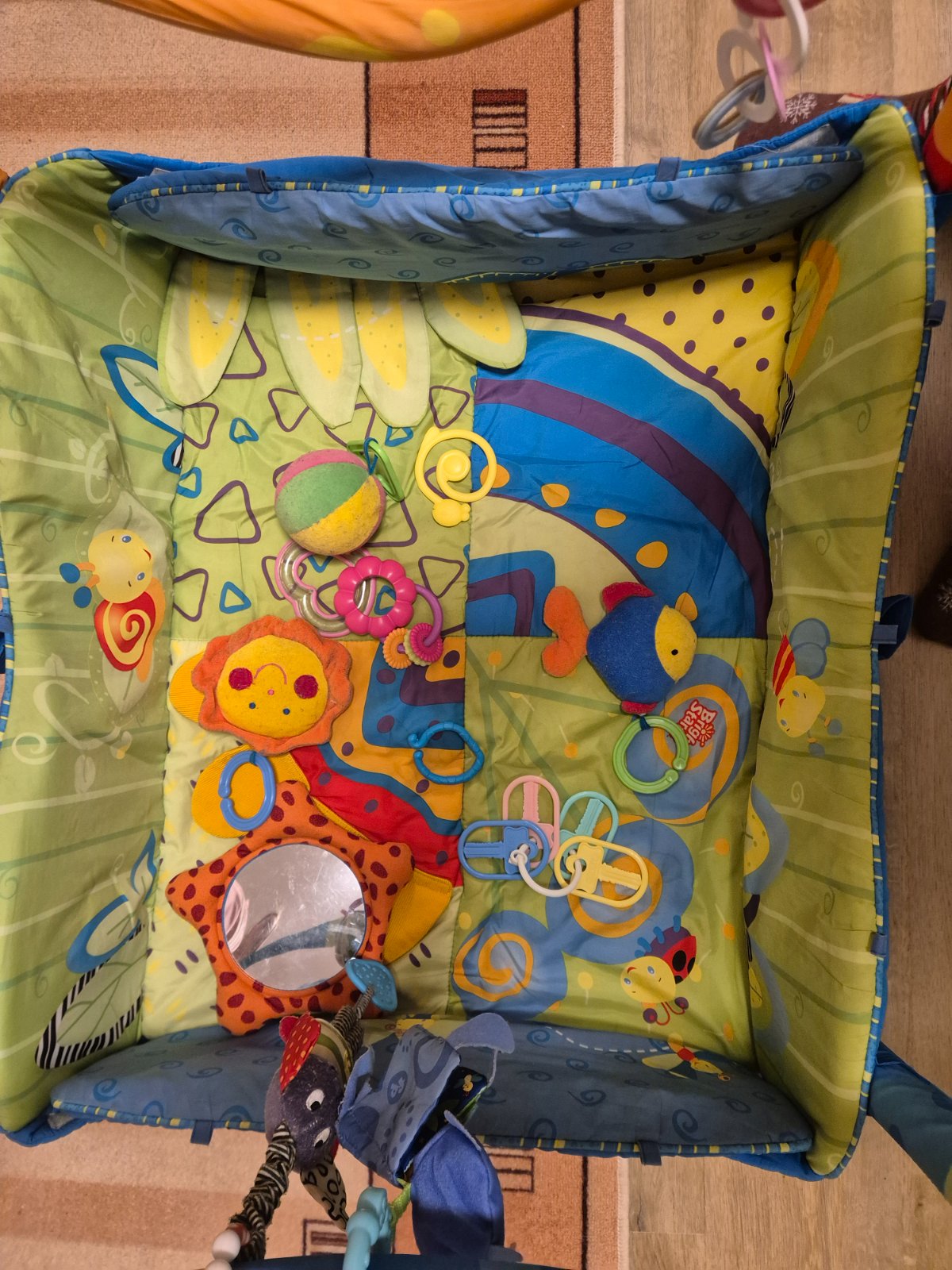 Hracia deka sa dá premeniť na bazénik,vystužená dvoma odnímateľnými hrazdičkami so závesnými hračkami.