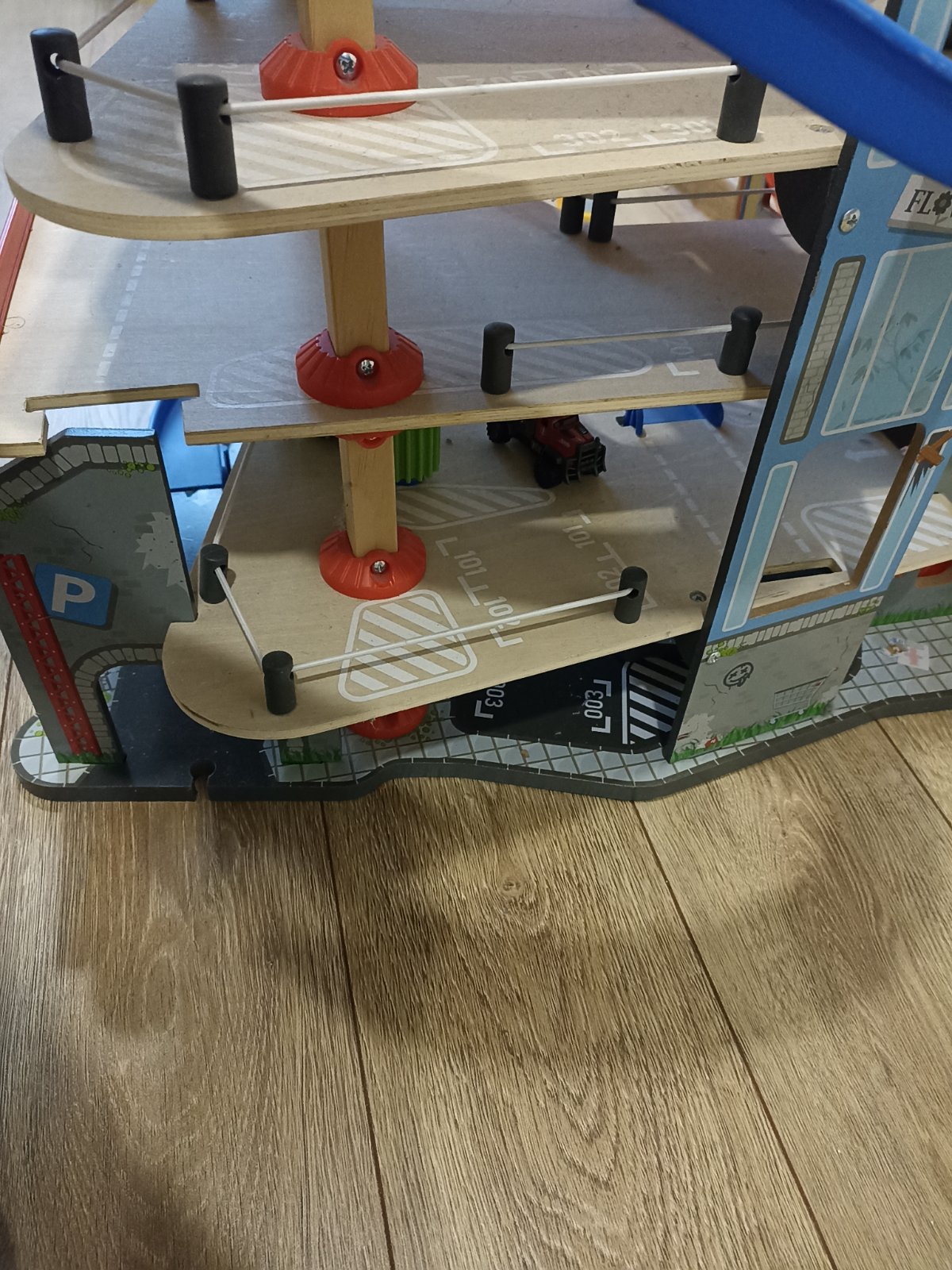Ponúkam drevenný parkovací domček. Funkčný výťah. Dve tankovanie stanice a vrtuľnik. Kupované v Tchibo. Pôvodná cena 55€. Eko certifikované drevo/ materiály. Hrané , drobné nedostatky sle všetko f...