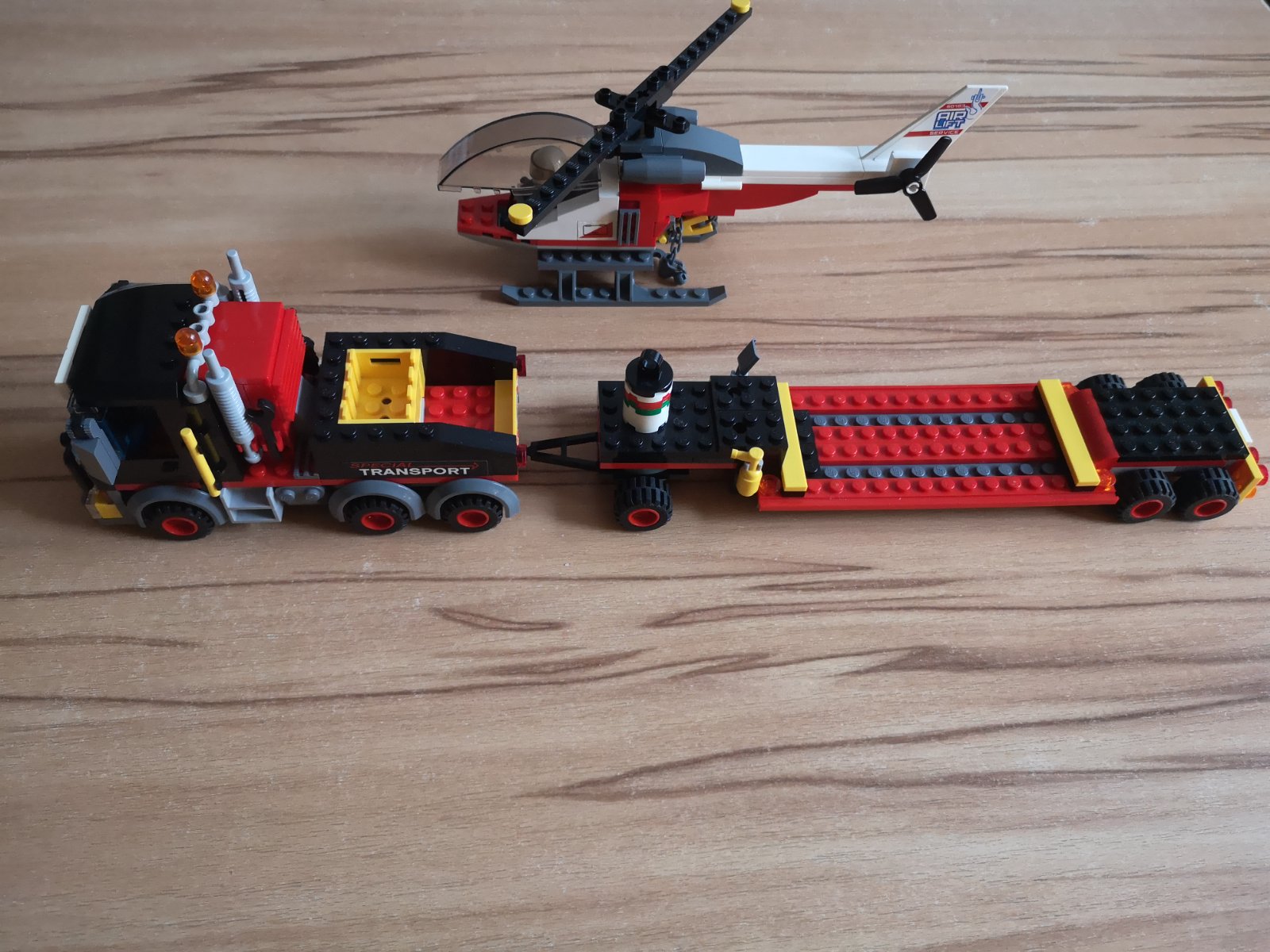Ťahač má otváraciu kabínu, predĺžený príves je odpojiteľný. Helikoptéra má otočnú vrtuľu, otvárací kokpit a reťaz.