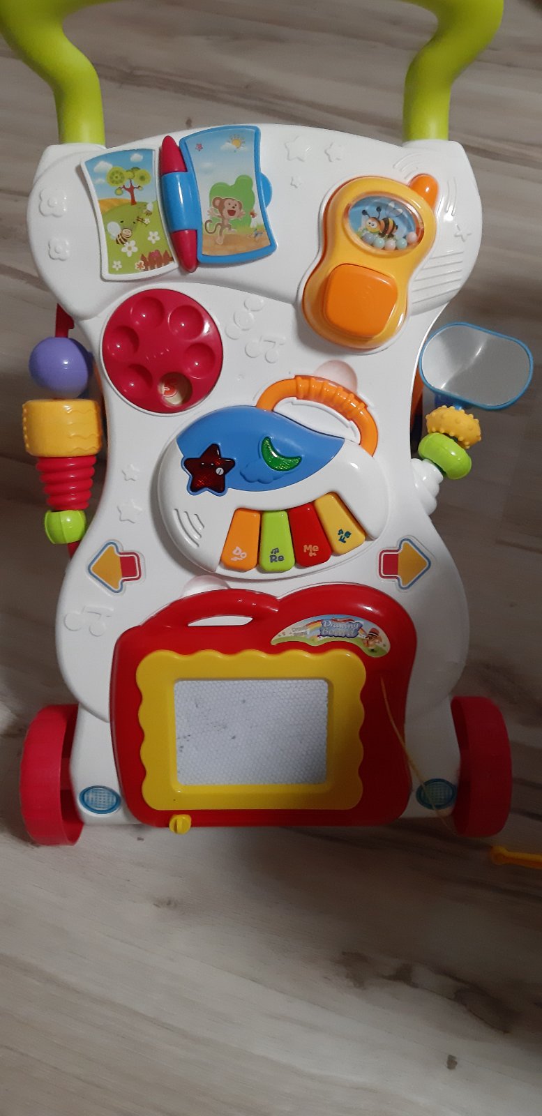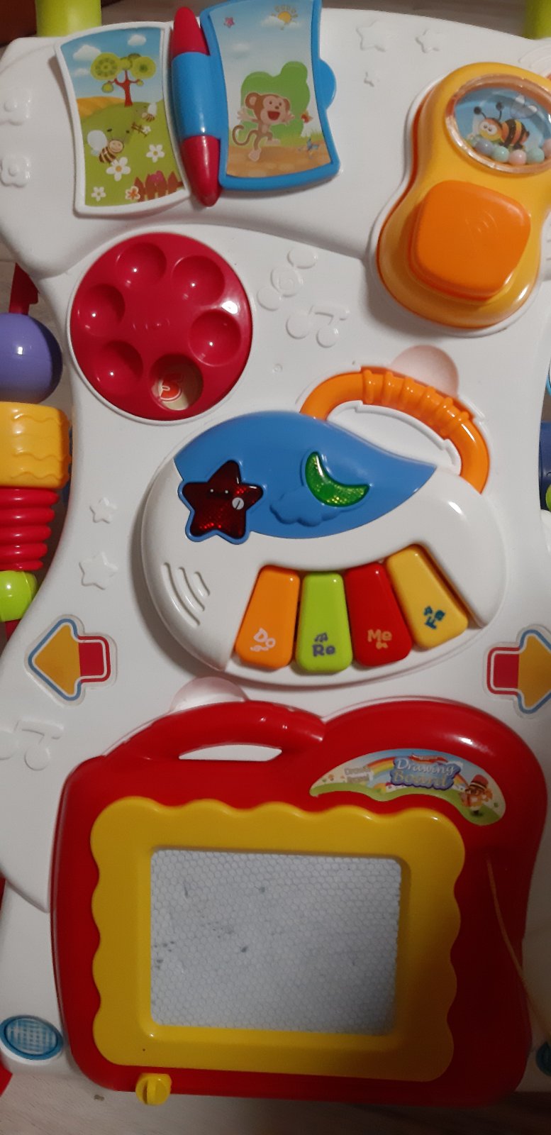 Chodítko je ľahkej plastovej konštrukcie v celku. Predné kolieska sú otočné,zadné sú gumené,chrániace podlahy(už žiadne ryhy). 3 stupňová regulovateľná výška sedenia 6 bŕzd Hracia doska s hračkami ...