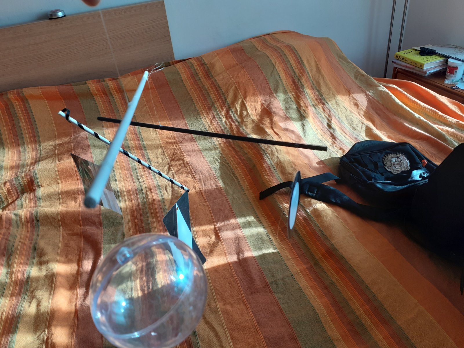 Pri prvom drobcovi mi munar velmi chybal, po nom som si kupila doma vyrabany pouzity tu na MK, ale kedze druhy drobec nie je, zbavujem sa ho ;).. drevene palicky, plastova gula, zalaminovane obrazky, rybarsky vlasec (dost zufalo viazany)