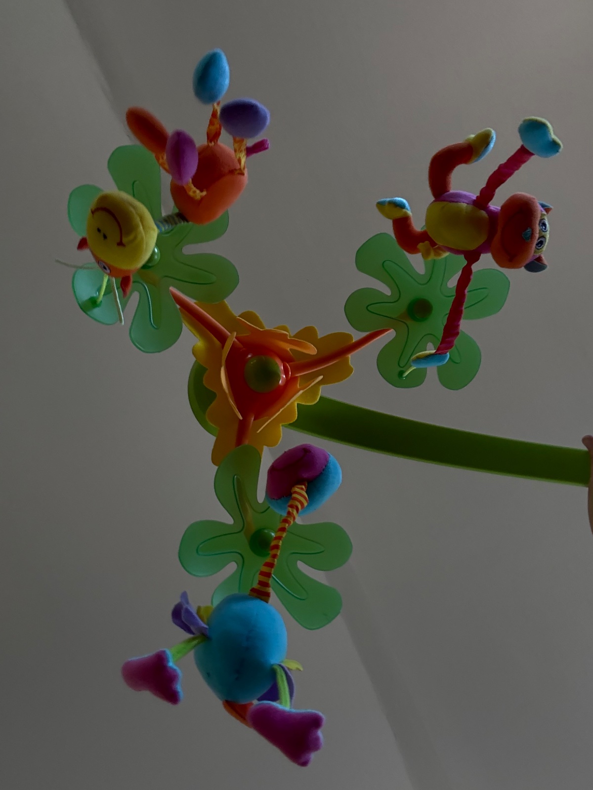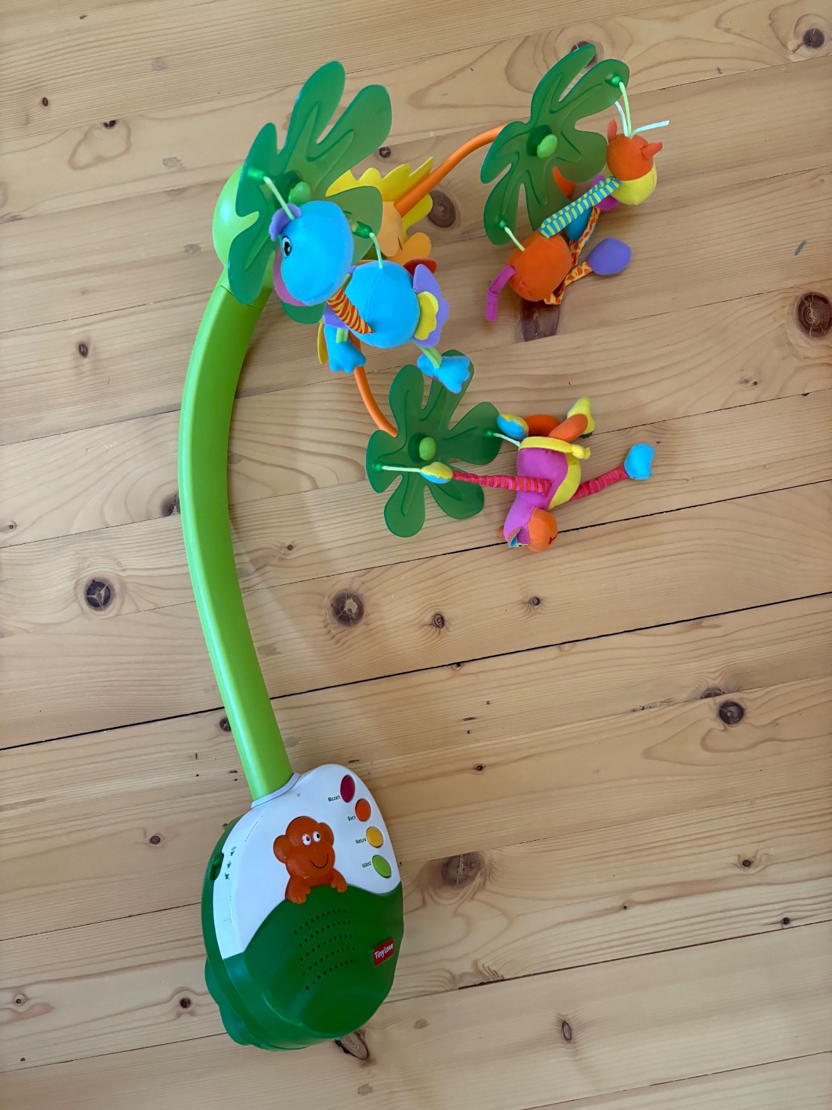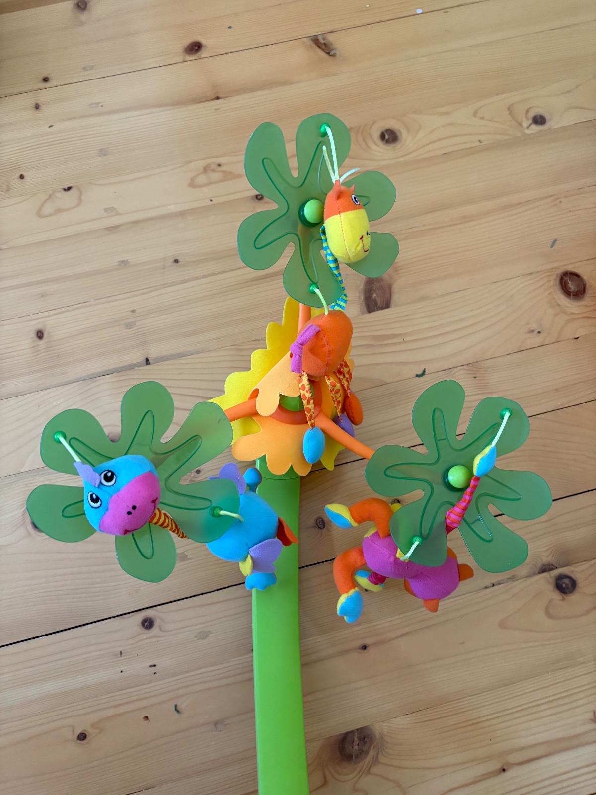 Kolotoč Tiny Love sa otáča a hrá 4 melódie s možnosťou nastavenia hlasitosti, 2 klasické a 2 zvuky prírody, každá hrá 20 min