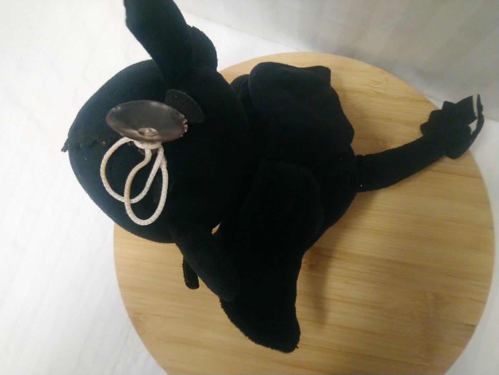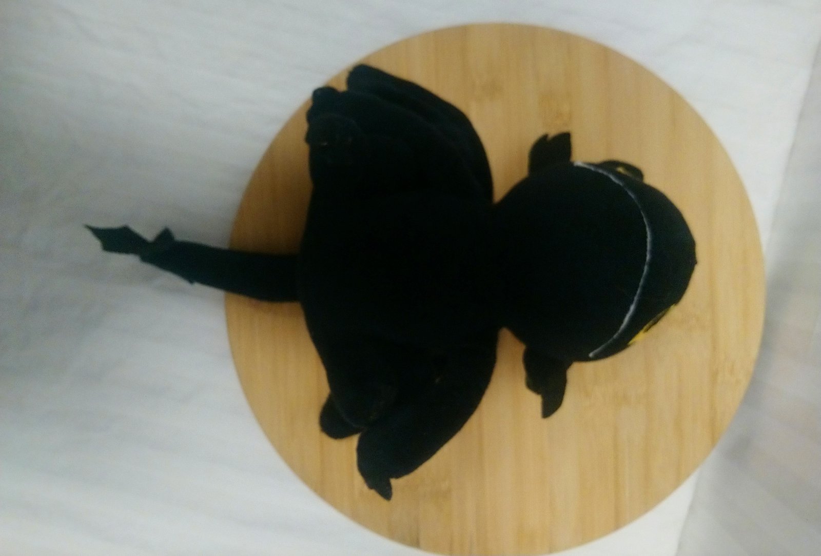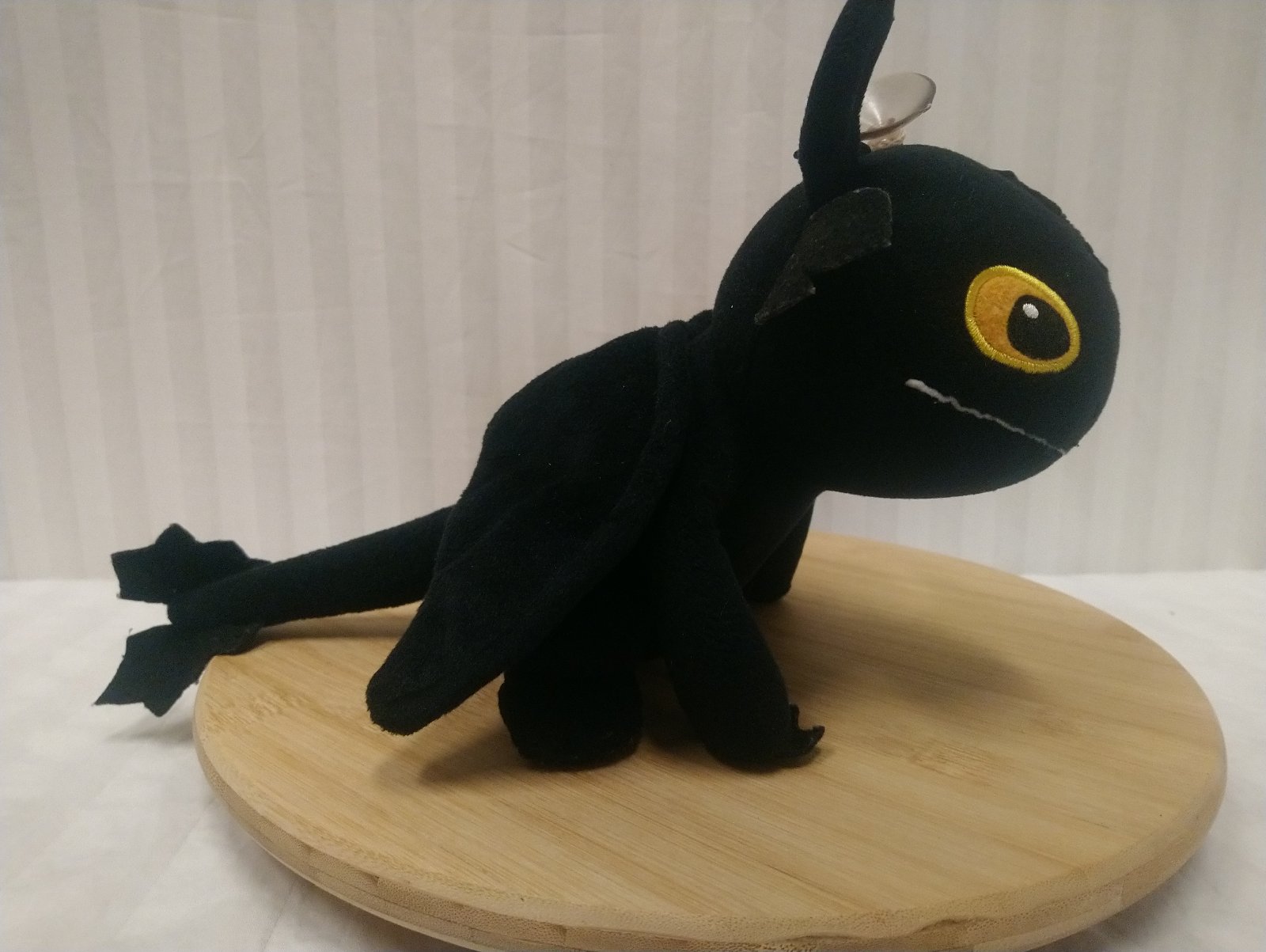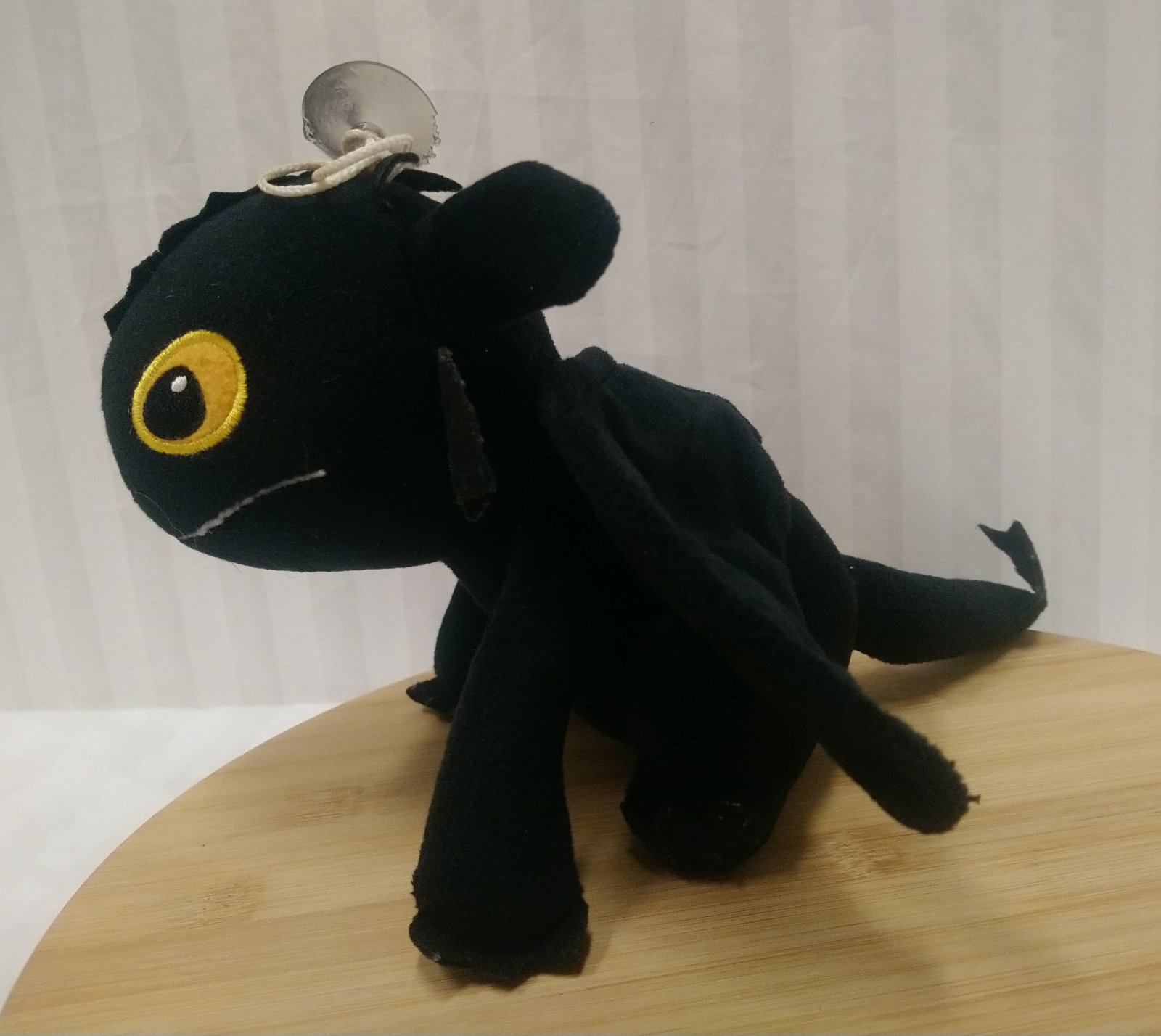 Plyšový Drak Bezzubý, z rozprávky Ako vycvičiť draka, farba čierna, so šnúrkou na zavesenie s prísavkou - na prísavke mierne poškodenie - pozri fotku,